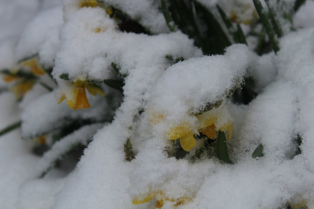 For a day, it’s okay. Photos of flowers in the snow are nice, and here they are. Okay, now it’s time to move into spring.