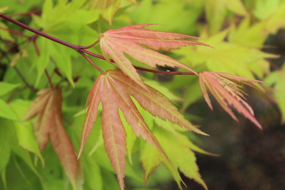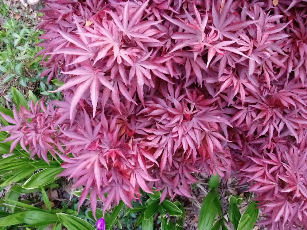 The dwarf ‘Shaina’ Japanese maple is a curiosity, growing only knee high. Over the winter, a nearby, struggling spruce was removed, so ‘Shaina’ has more space to spread.