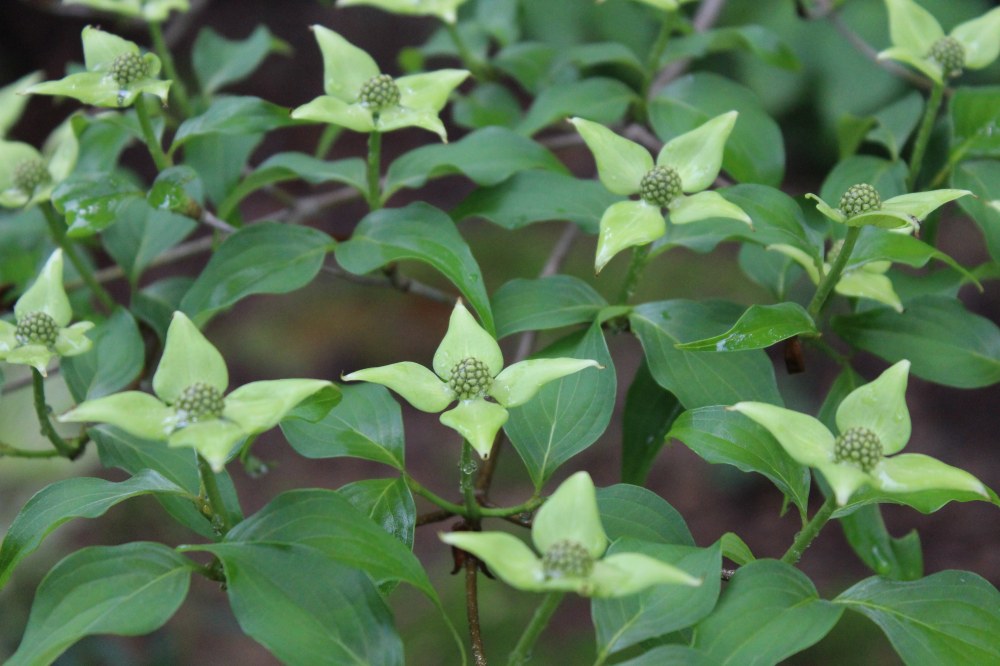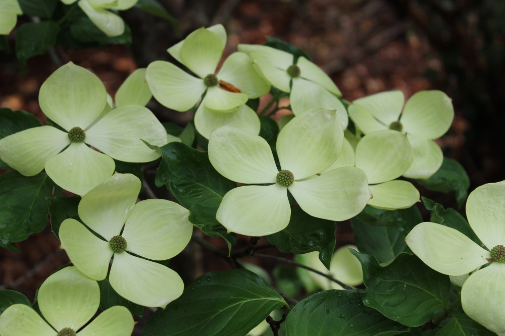 The Chinese dogwood (Cornus kousa) will be in full bloom in ten days. Leaves appear before flowers, but foliage will nearly be covered when flowers are at their peak. The selection of one dogwood rather than another can be decided by time of flowering, with the native the earliest, followed by hybrids, then Chinese dogwoods. If disease resistance is a factor, hybrids and Chinese dogwoods are almost completely resistant to the variety of diseases and fungus that afflict our native dogwood.