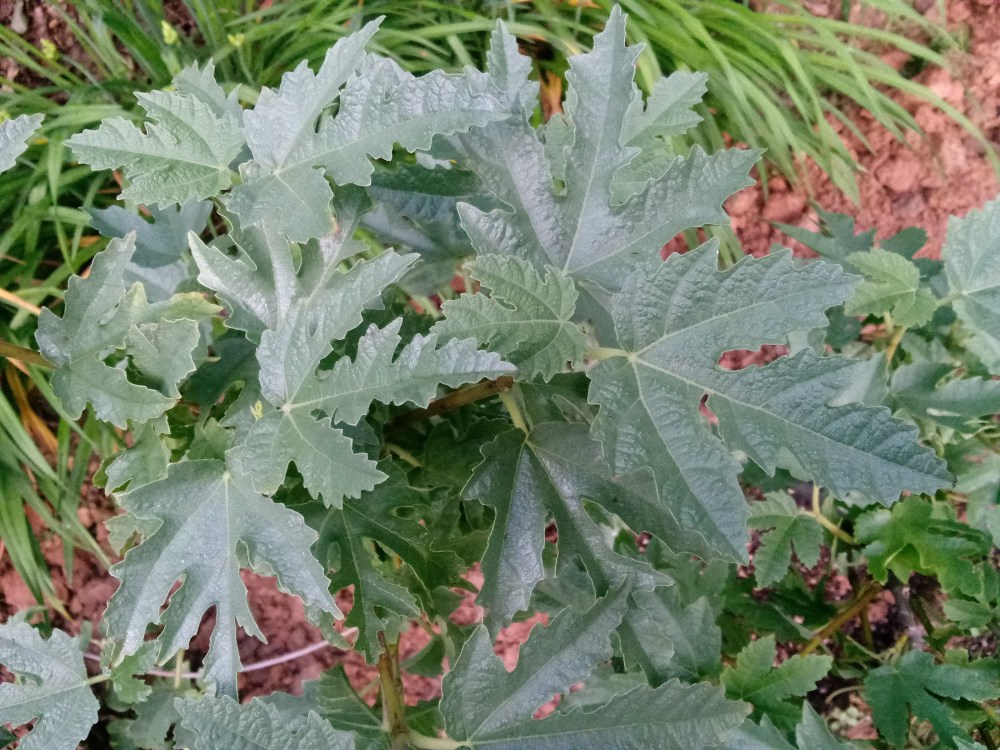 As often happens, the debris path in a deluge shows the natural flow of water, and the small area where one of the new Afghan figs (Ficus afghanistanica ‘Silver Lyre’, above) was planted barely avoided being washed away. A bit of loose soil was relocated onto the stone patio beside the koi pond, but it could have been worse, and this was tidied up quickly. As expected, the figs and a few other smaller things planted last week have had no problem, and of course I expected no issues since these were planted in another of a string of rainy weeks.