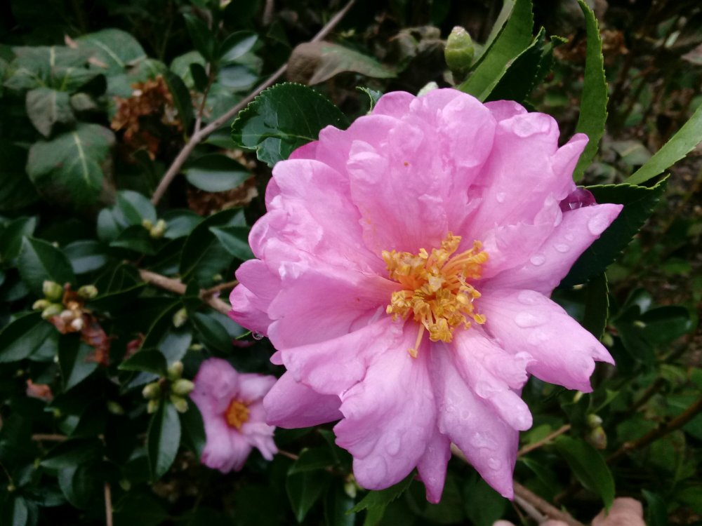 Several pink flowered camellias can hardly be differentiated, and the while buds of white camellias are swelling, they are likely not to flower for a few weeks. In recent years, ‘Winter’s Snowman’ and ‘Snow Flurry’ have flowered earlier, but it is only the pinks blooming in October. As always, another, more shaded ‘Winter’s Star’ and ‘Winter’s Interlude’ have numerous buds, but show no indication that flowers are imminent. Both typically do not flower until late December, at the earliest, with flowers often appearing in spells of mild January temperatures.