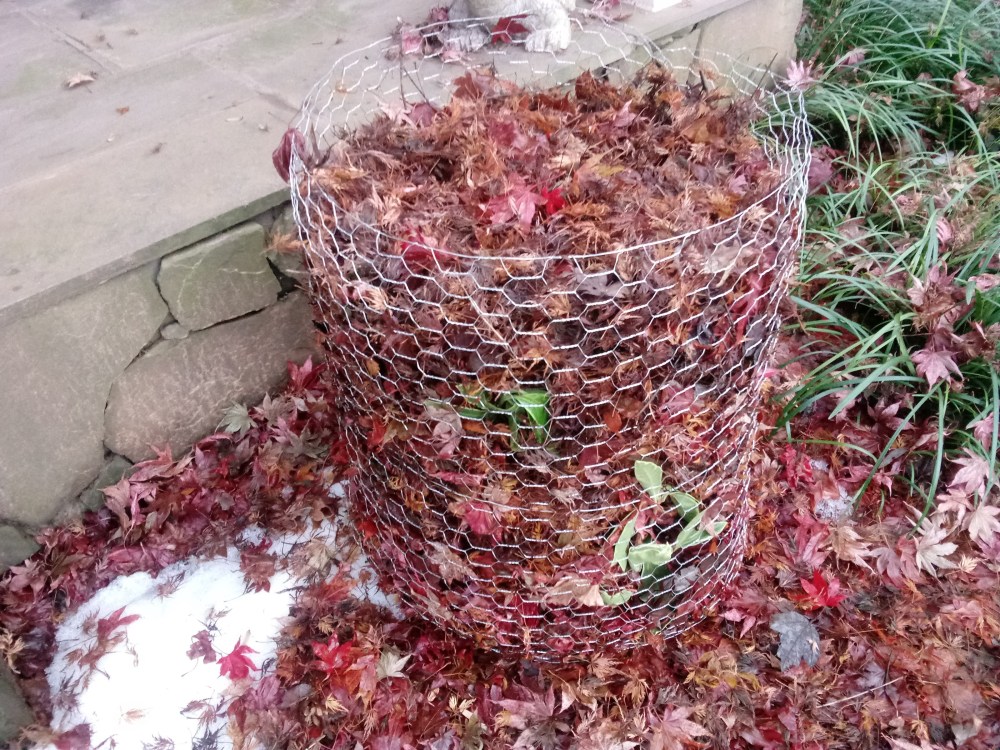 So, constructing leaf filled cages is probably a good bet, at least in this first year after planting. No purpose is served by leaving the fatsias and Anise shrubs to go unprotected, and certainly there are plenty of leaves covering the garden to fill the cages. Whether this will be enough to get them through the winter, we’ll find out.