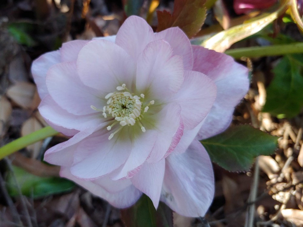 A few days ago, I wrote that double flowered hellebores are later blooming than singles (above), and just as the words were written the doubles began opening. Later than singles, yes, but this year by days rather than weeks. In any case, these are now flowering, with only a few straggling hellebores still to bloom. It is the fuller, double blooms that are most likely to grab the attention of newcomers to the multitude of hellebores available. I’m thrilled with singles or doubles (below), and I favor single flowered, unnamed seedlings as much as any.