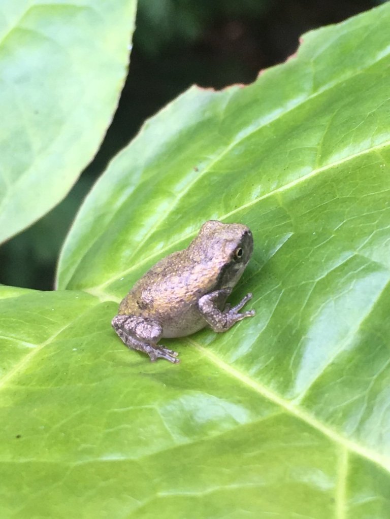 Be warned. Tread carefully while walking through this garden. One eye must be attentive to stepping stones that wobble, unbalanced on tree roots, to avoid a nasty tumble. While the other eye might roam to enjoy the garden, beware that every step might end the life of one of dozens, perhaps hundreds of frogs that reside in the garden.