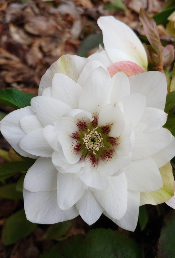 Surprisingly, a few hellebores (above and below) have not opened their first flower, while dozens more have flowered for weeks, certainly the most blooms ever in February. Unless temperatures jump into the seventies, flowers are unlikely to fade for several weeks, so there will be at least six weeks of bloom and several weeks more for many. Not included in this period of bloom is the extended time when the flower fades into April, as often hellebores are cited for flowering ten to twelve weeks, though blooms are worthy ornaments only half of this period.