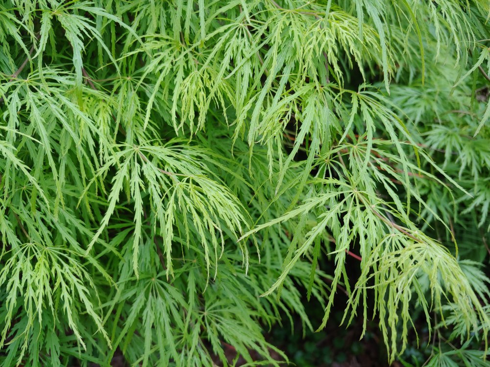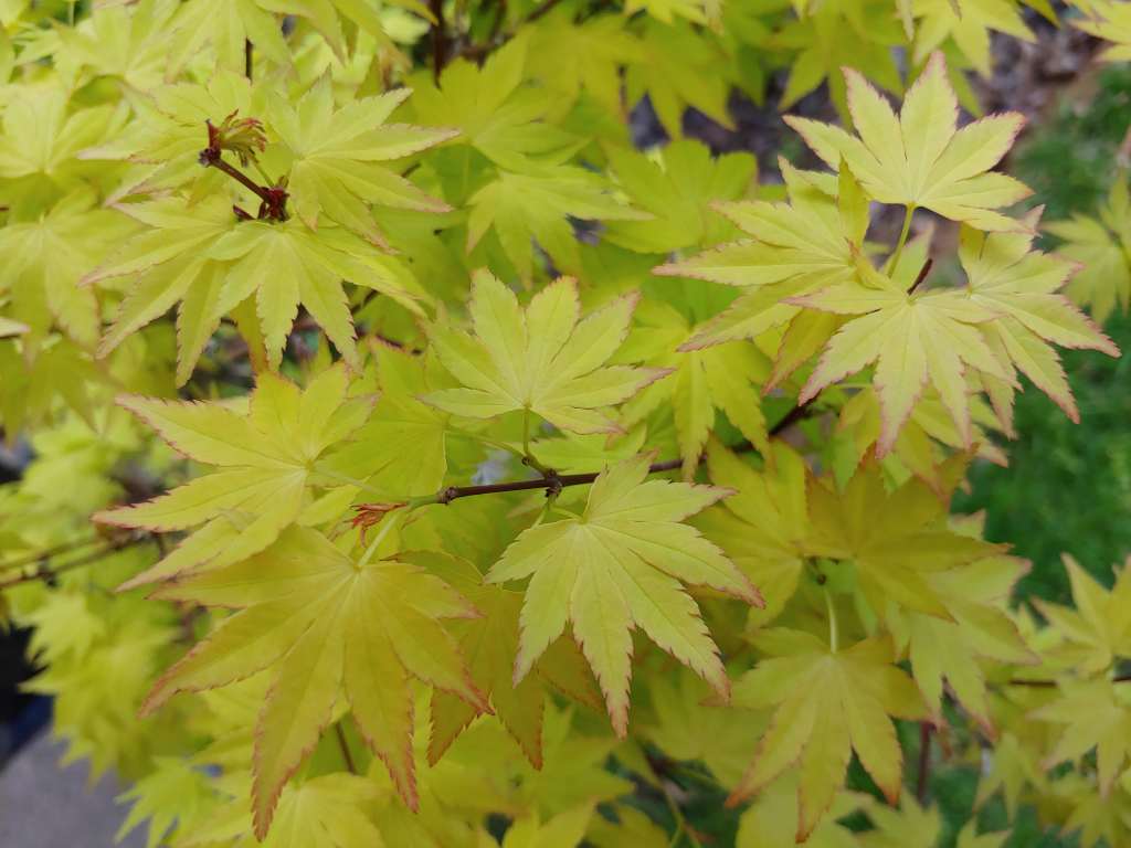 When I do a rough inventory in my head I count more green, yellow and variegated leafed maples than red. I think the count is actually nearly even, but the red ones blend together and for whatever reason I favor the others.