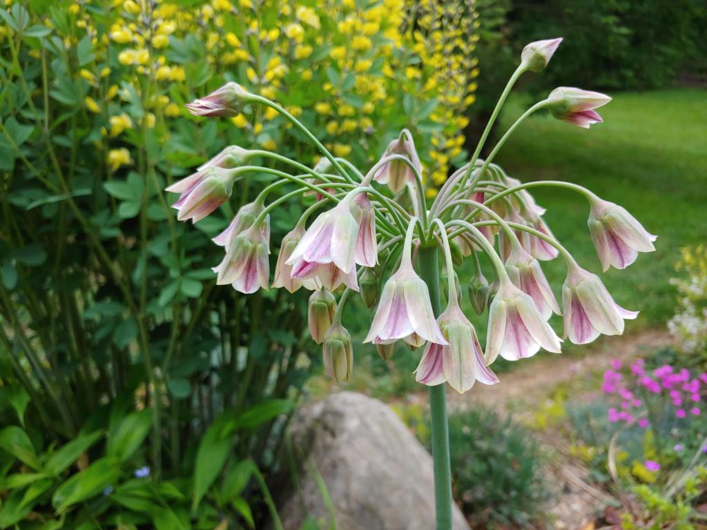As expected, damage from our mid May freezes has been mostly covered over. Now, the gardener’s concern shifts to high heat and drought that must be around the corner, though that seems far away as I lounge in dappled shade on this breezy and wonderfully pleasant afternoon. The patios and paths are a mess, my wife points out, littered with debris of cold damaged leaves. If visitors were expected I would consider a quick cleanup, but the browned leaves will decay or blow away as always, and I’m hardly bothered by less than pristine conditions. My vision for the garden does not require perfection, but I’ be happier with fewer maple seedlings.