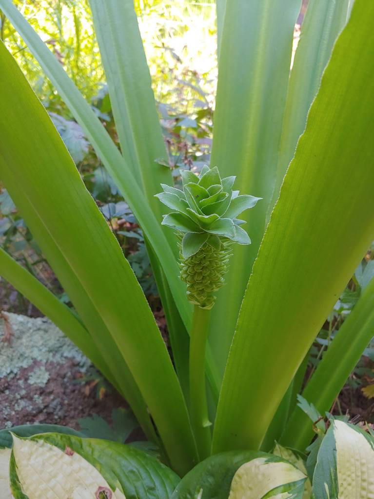 Several Pineapple lilies (Eucomis) are likely to be at peak bloom when I return. Flowers are barely evident on ‘Sparkling Burgundy’ and several others so some will wait for my return.