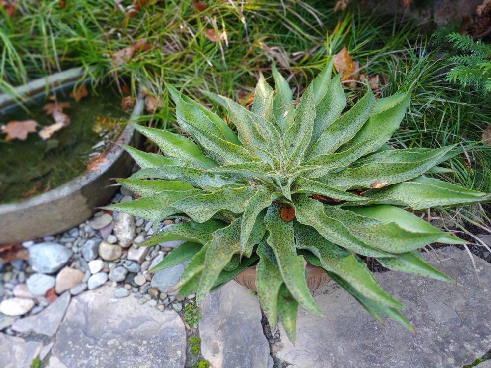 Several nights have neared temperatures to bring our first frost, but I delay as long as possible to clutter the basement with the tropicals that are scattered around the various patios. This year, there are handfuls of mangaves, more vigorous substitutes for agaves that pose a danger in moving indoors with their lethal spines. Mangaves appear just as dangerous, but their flexible spines are mostly for show.
