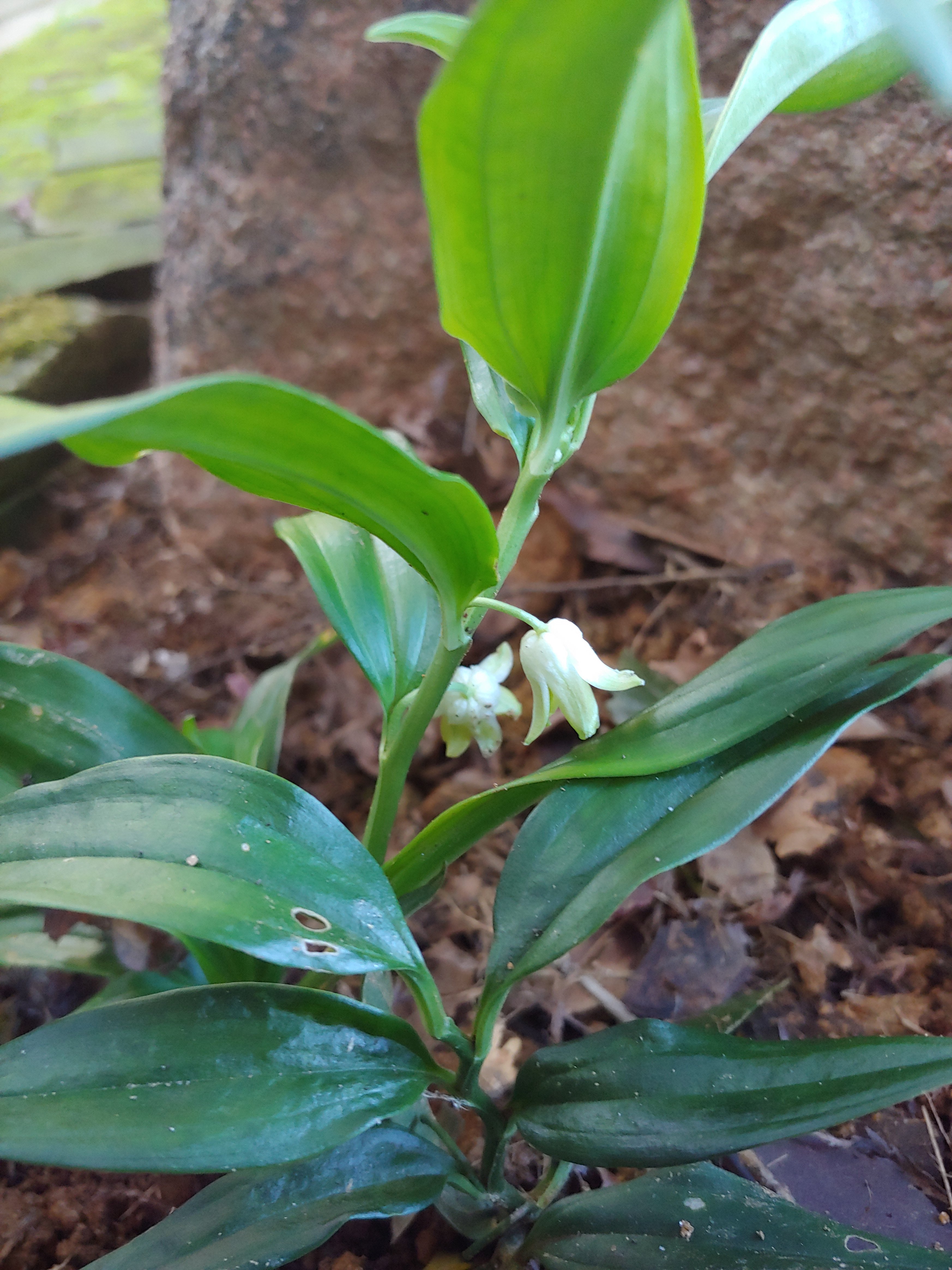 Several newly delivered Lady Slippers were planted on the far side of the narrow stone path, which I expect will be a better fit for the orchids. While planting the orchids and several new woodland treasures, I noticed that an evergreen Solomon’s Seal (Disporopsis pernyi, above) had tripled in size since planting in the spring. I was not satisfied with its location from the start, so it was split into fourths, with one remaining and the others placed more prominently. As confirmation that the first location was less than ideal, I discovered the Solomon’s Seal was flowering, but out of sight for a bloom so small.