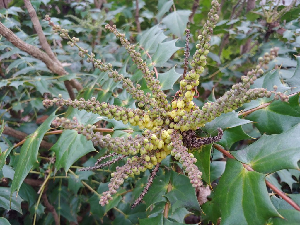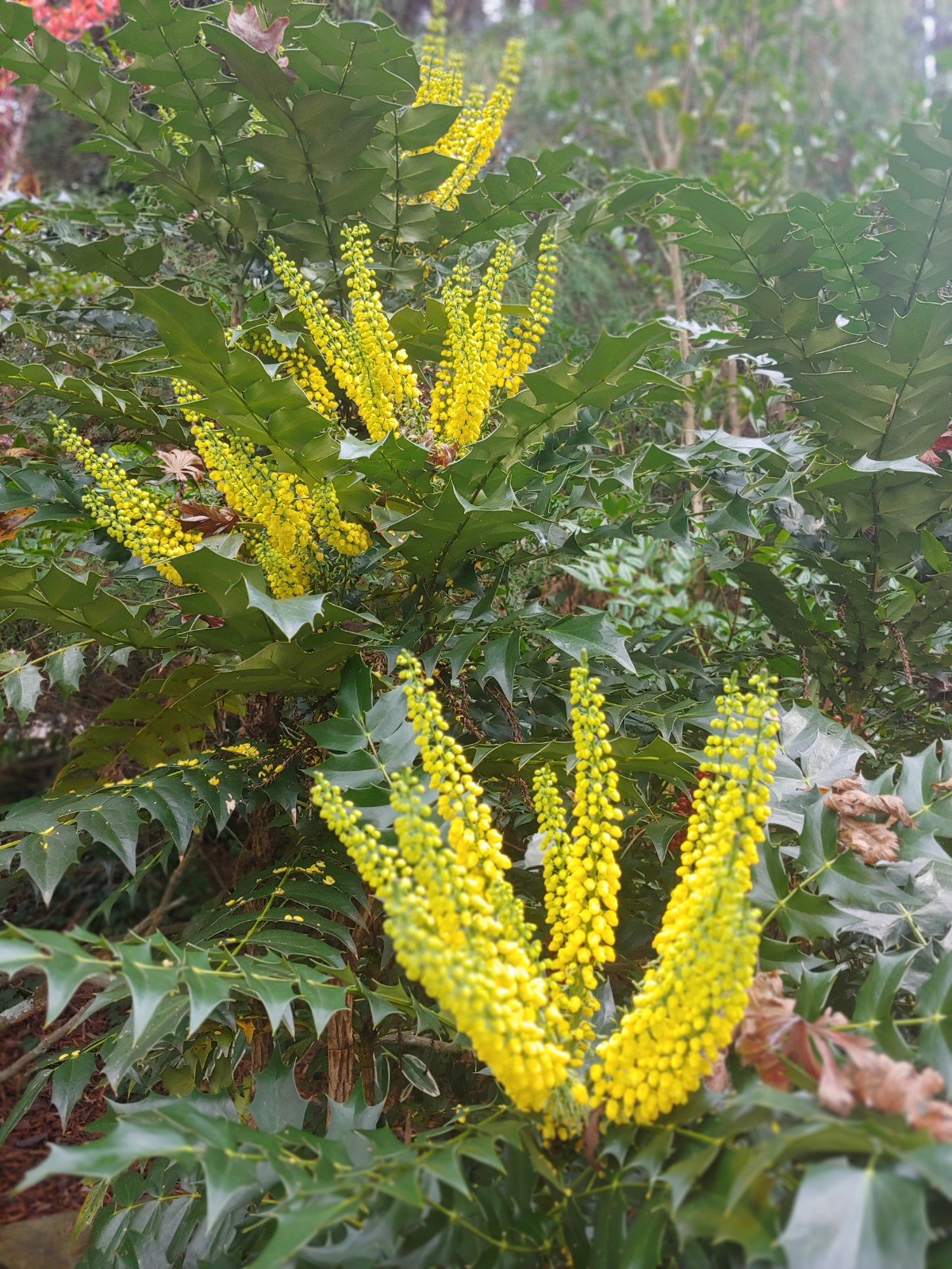 The autumn flowering mahonias (Mahonia x media)) are past their peak, a considerable change from a year ago when flowering continued into late January. I expect blooms will remain into this new year, but likely not for long.