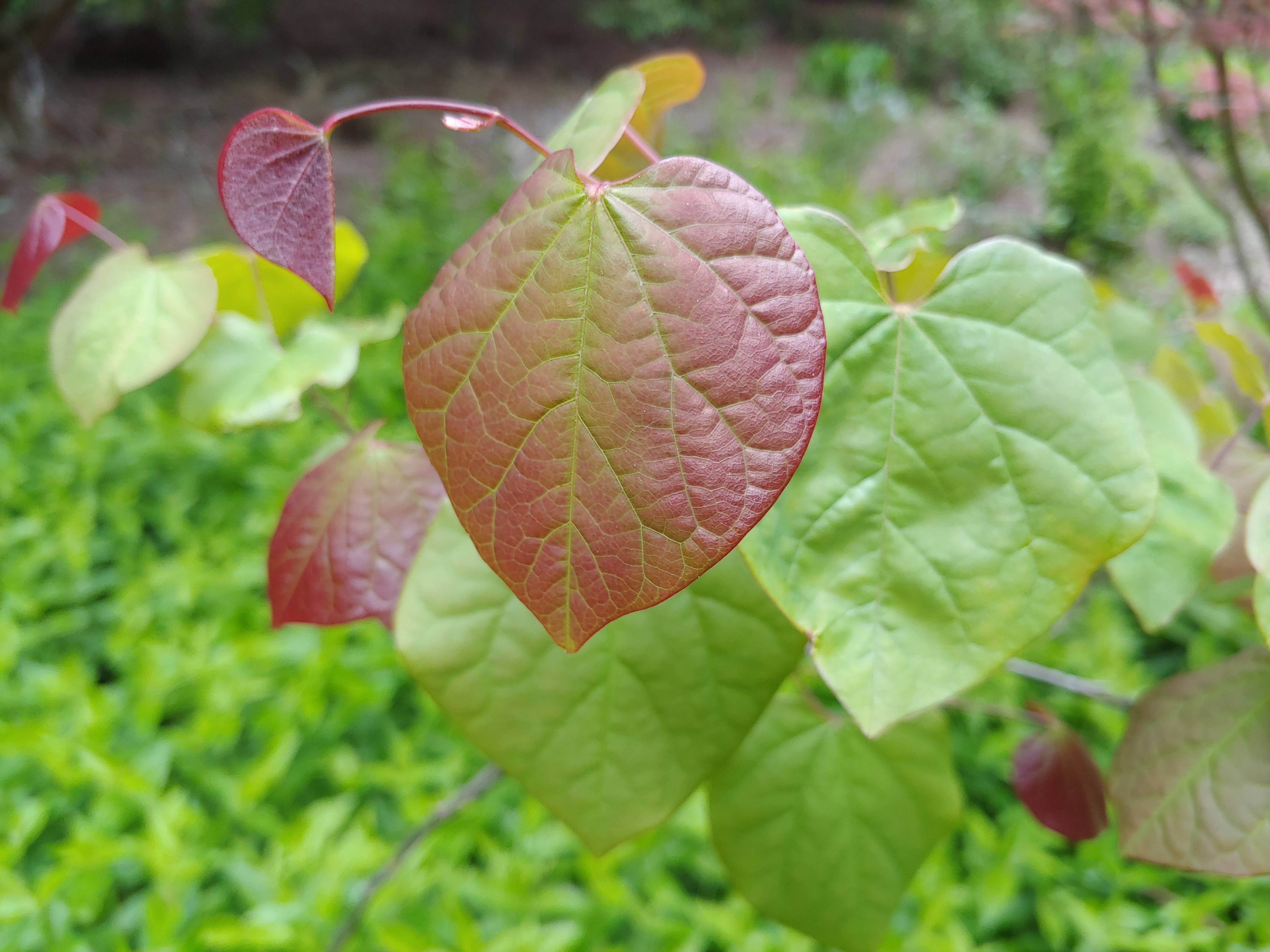 A seedling redbud (below) growing in a dense patch of mountain mint (Pycnanthemum muticum) almost certainly derives from a dark leafed ‘Forest Pansy’ (Cercis canadensis ‘Forest Pansy’) that once grew nearby. The Forest Pansy perished as the soil became overly damp, but this seedling is in slightly higher and drier ground. The seedling is too close to a Japanese maple, so if I choose to grow it on I must transplant it. But, is this worthwhile?