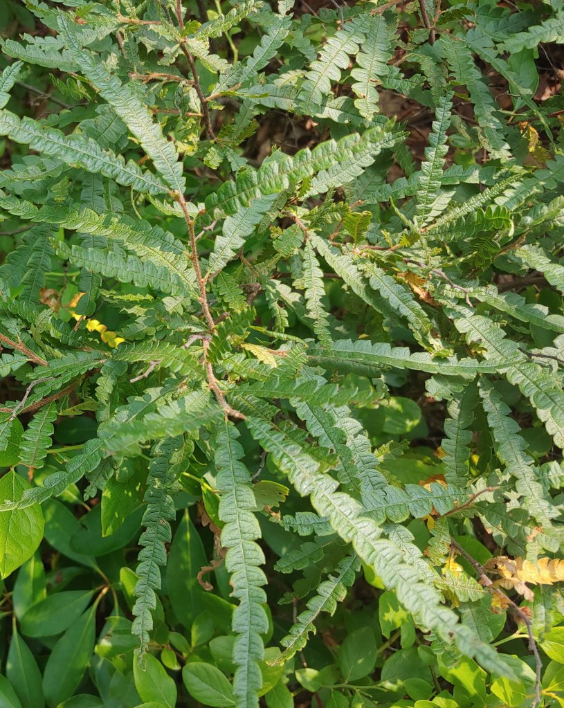 Comptonia peregrina looks surprisingly similar to Lyonothamnus floribundus ‘Aspleniifolius’, the Santa Cruz Island ironwood. (We learned it as the (Santa) Catalina (Island) ironwood, which is actually ‘Floribundus’.) I saw it for the first time in a blog such as yours. It might have been one of your pictures a while back.