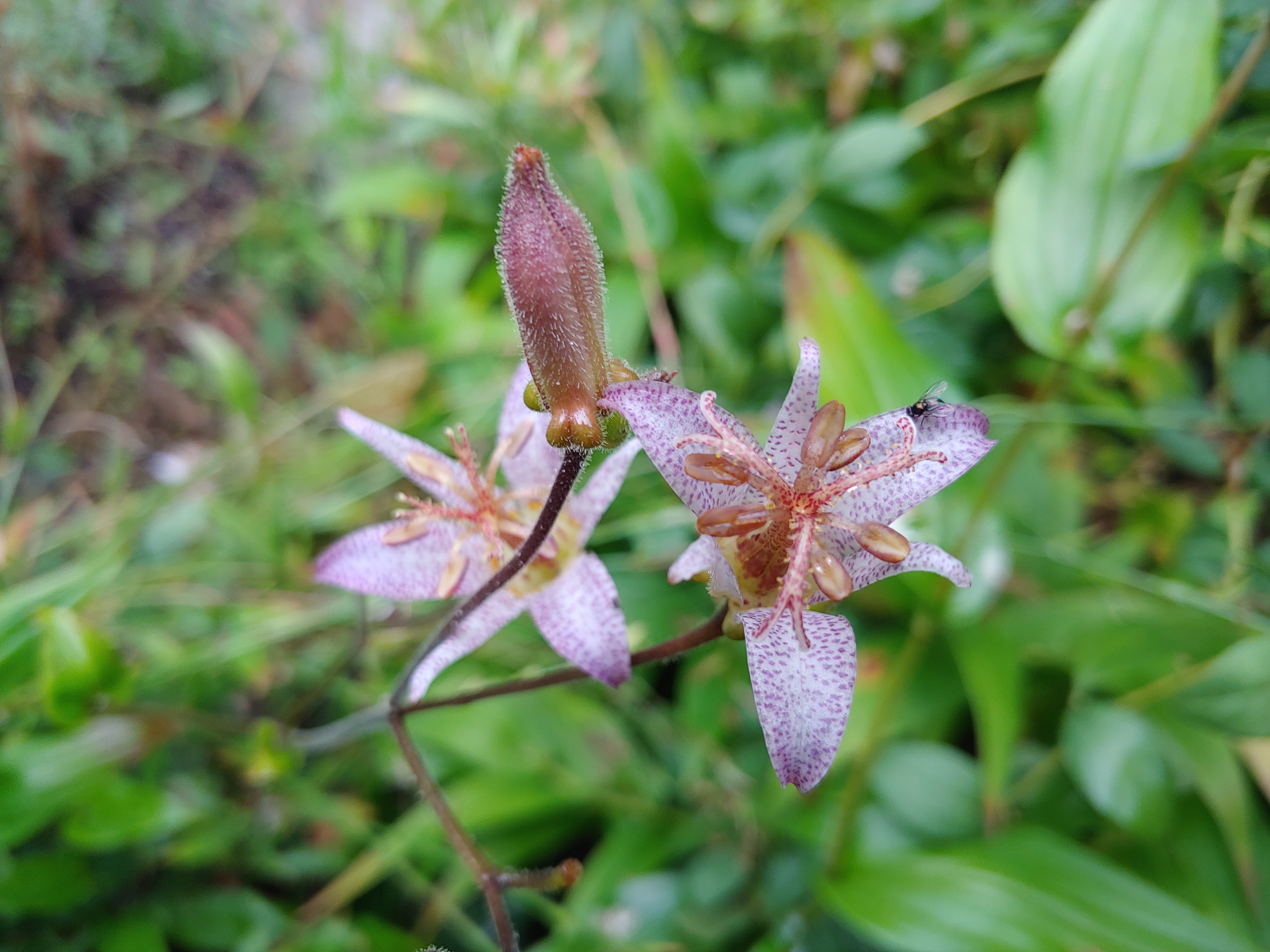Today I see the first flower of ‘Miyazaki’, but these are earlier in nearly full sun. Several toad lilies if more shade are budding, but a week or two from bloom.