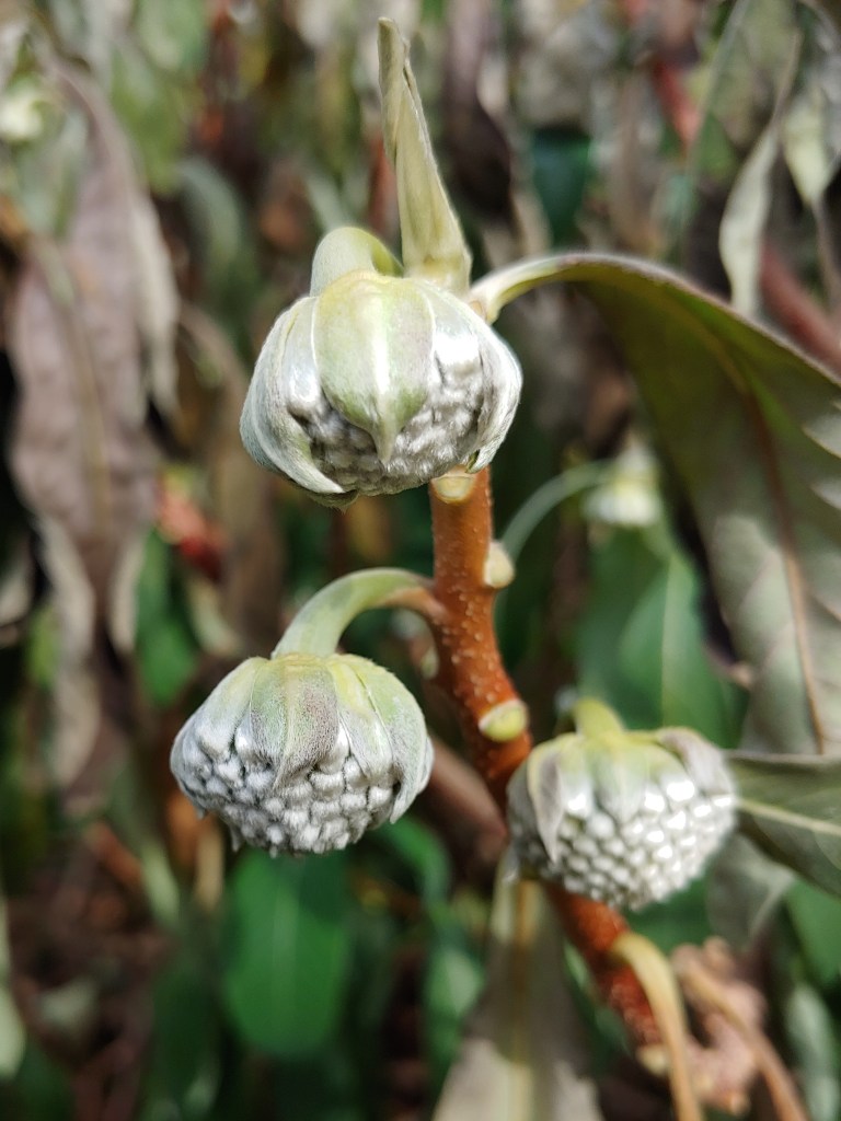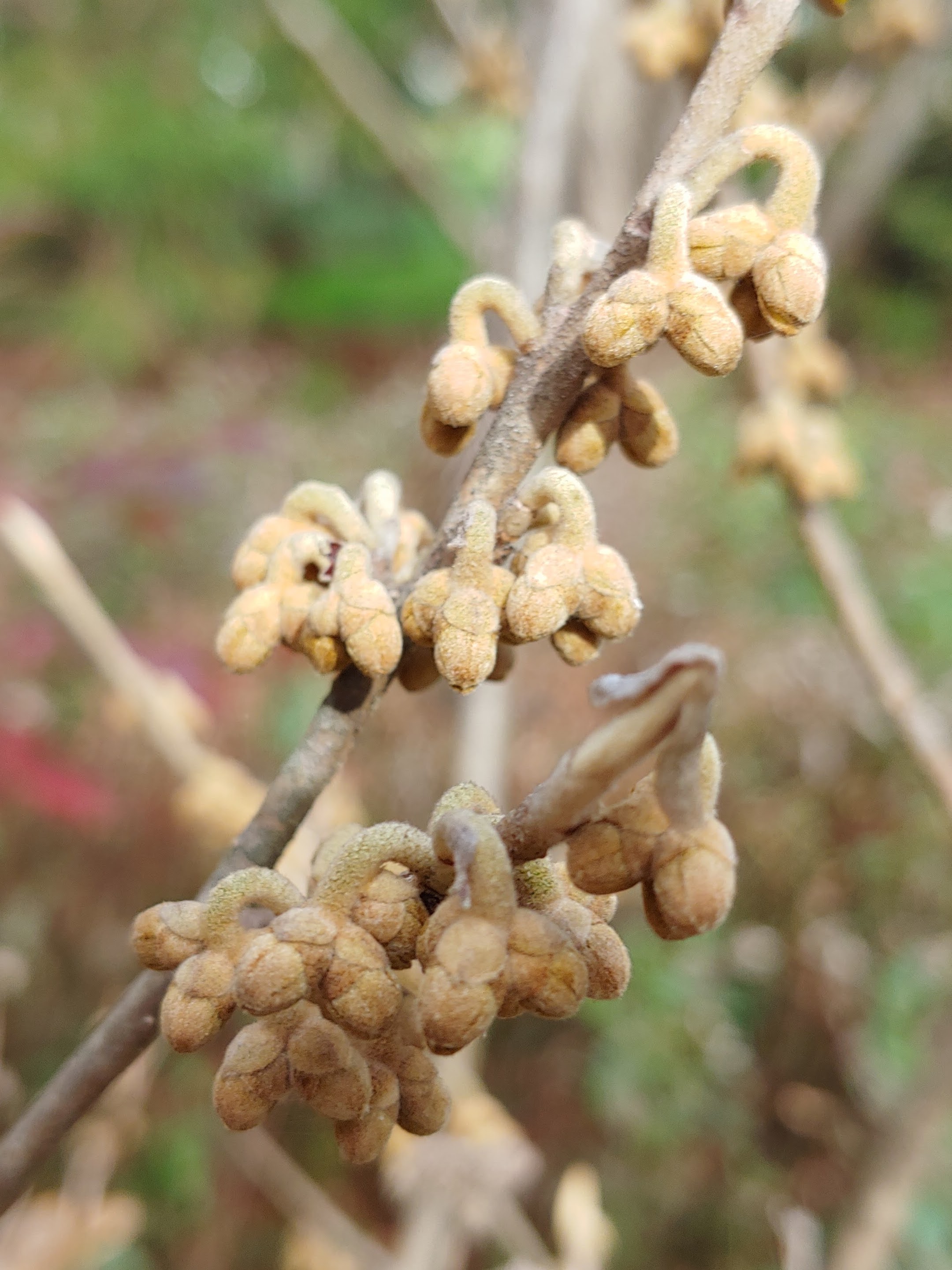Paperbushes (Edgeworthia chrysantha, below) flower earlier, sometimes in late January if temperatures are unusually mild, but most often flowers will show first color by mid February with peak bloom two weeks later. Buds seem unusually large this year, though this is likely to be imagined. Flower buds of paperbushes can be damaged by temperatures nearing zero (Fahrenheit), so while I know that the warming of the planet must be stopped, still I hope to avoid typical winter low temperatures.