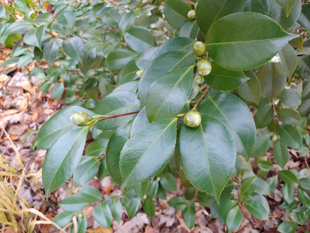Autumn flowering camellias continue to bloom through recent freezes, though fully opened flowers were damaged at twenty degrees earlier this week, and several will continue flowering into the new year with mild temperatures. Spring bloomers (Camellia japonica, below) are heavily budded, and there was a time when few buds turned to flowers with extreme winter temperatures, but not in recent years.