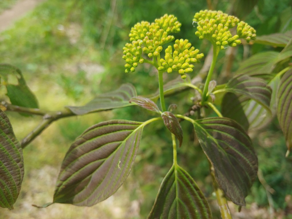 Several dogwoods have been planted this year, all past flowering at the time, so I’m anxious to see their first blooms. The evergreen ‘Empress of China’ (Cornus elliptica ‘Elsbry’, above) is planted most prominently after waiting years to find one taller than knee high, and two Pagoda dogwoods (Cornus alternifolia, below) were planted to add height to already planted areas. Both are a bit too close to paths as they grow, but the tiered branching of the Pagoda should be ideal for walking beneath after the few offending branches are snipped.