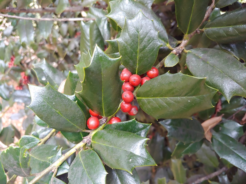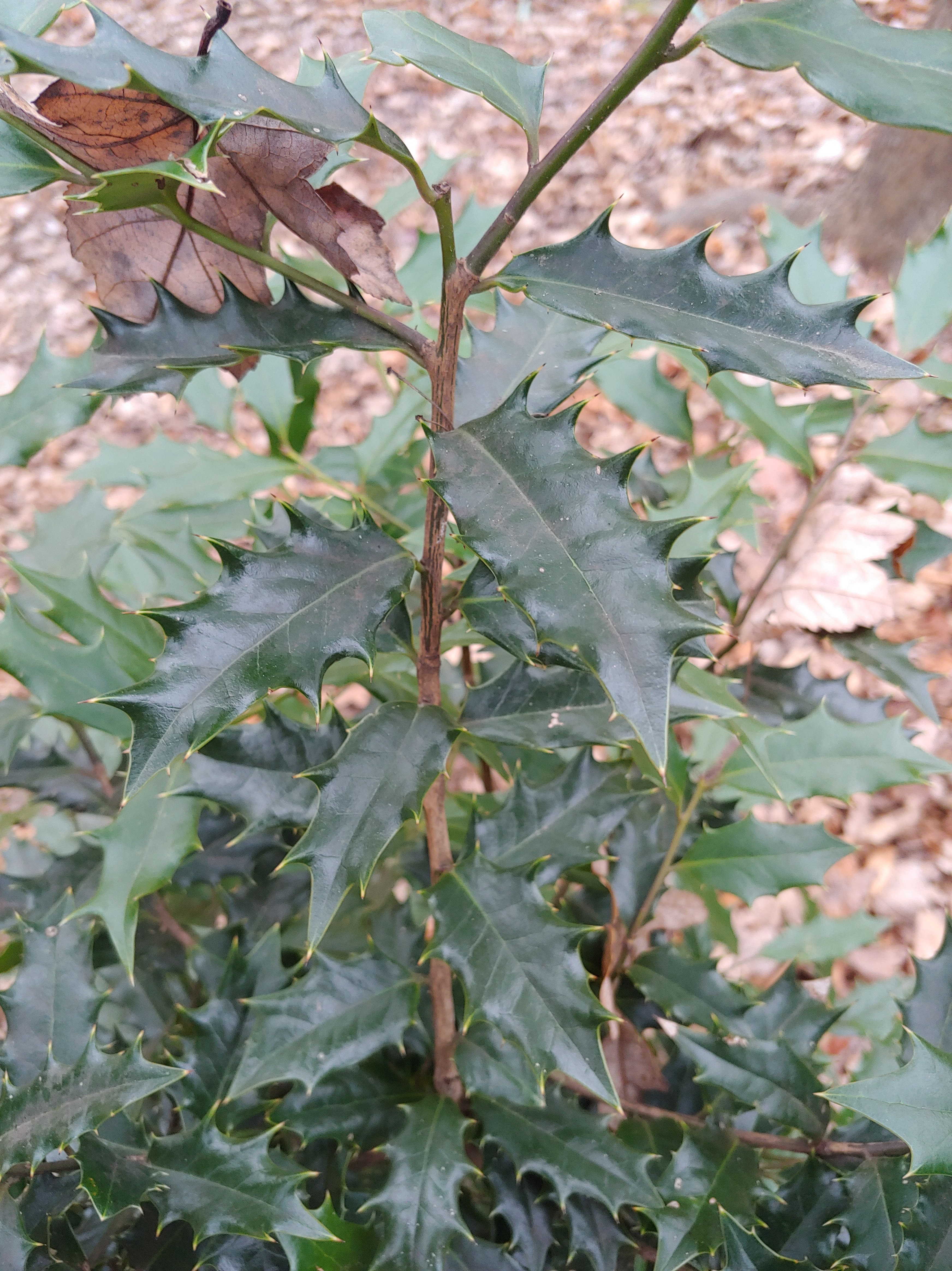 Hollies are so under appreciated here, and none are native. I have not seen an American holly since 1990, when we were still in school. Even then, I remember that they are variable from seed, although I suspect that if there are any still out and about in old landscapes, that they were likely prehistoric cultivars of some sort. (I mean that they, even if they were not ‘cultivars’, they were likely grown from cuttings of particular parent plants.) I noticed a while ago that a few English hollies were sold as paired plants, so that a female cultivar came with its own pollinator. However, I doubt that anyone else notices enough to make sure that one plant did not crowd out the other. I could really get carried away on that subject.