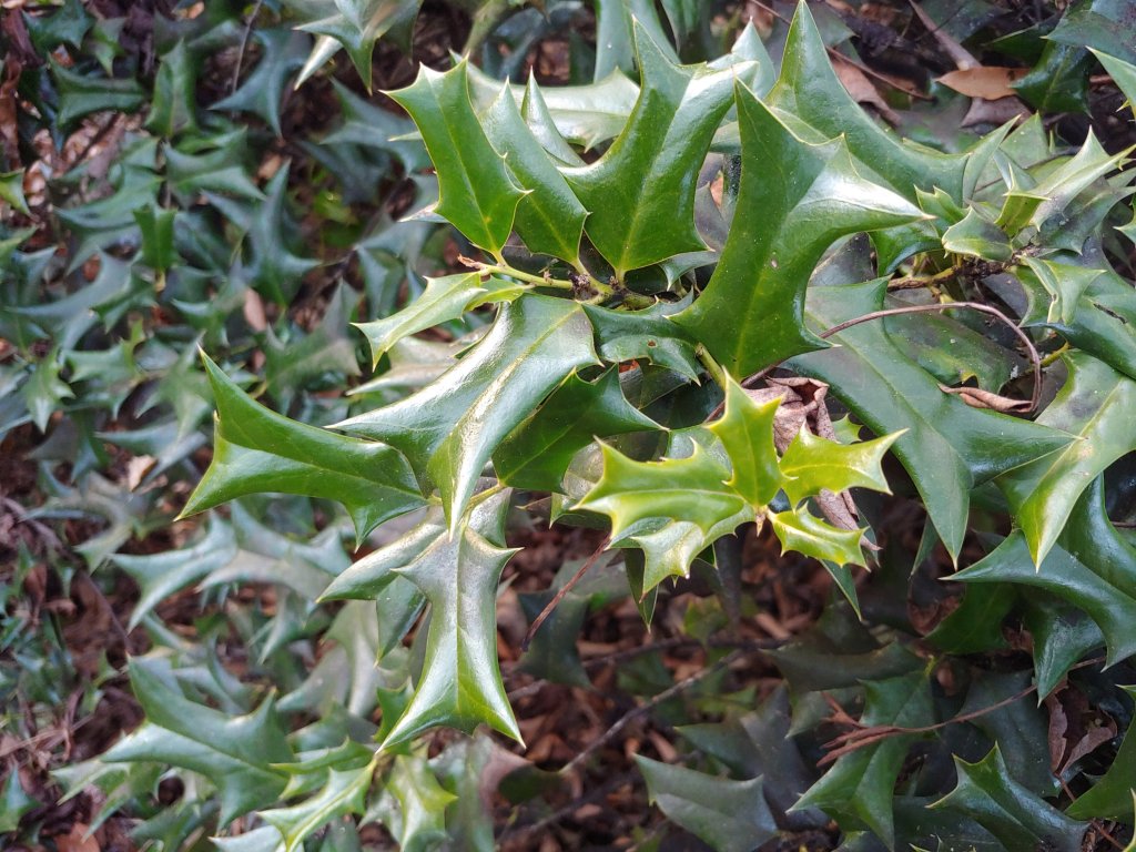 A seedling holly of unknown parentage was found and transplanted to an area with room to grow. This holly is particularly spiny and upright growing. Similar hollies could be excellent for boundary hedges. The glossy, dark green leaves differentiate it from American hollies so I suspect it is a hybrid of the hollies below.