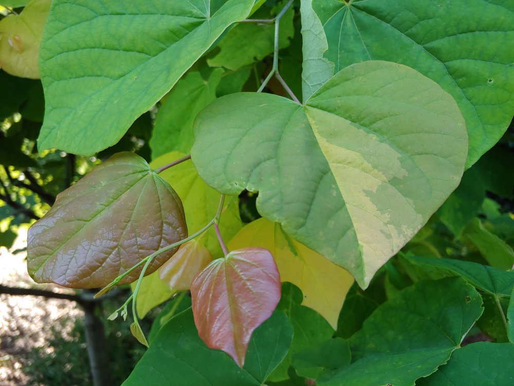 We’ll close today with a look at the unnamed redbud planted in autumn two years ago. This redbud is a mutation from the yellow leafed ‘Rising Sun’ with some leaves identical to ‘Rising Sun’ and others completely green or a mix of green and yellow. The new leaves are the distinctive apricot color of ‘Rising Sun’ and unlike other redbuds, and in its second spring I’m now curious what colors will predominate once this overly soft new growth matures. No matter how it turns out, I’m happy to have this one-of-a-kind, even if it proves not to as marvelous a tree as ‘Rising Sun’.