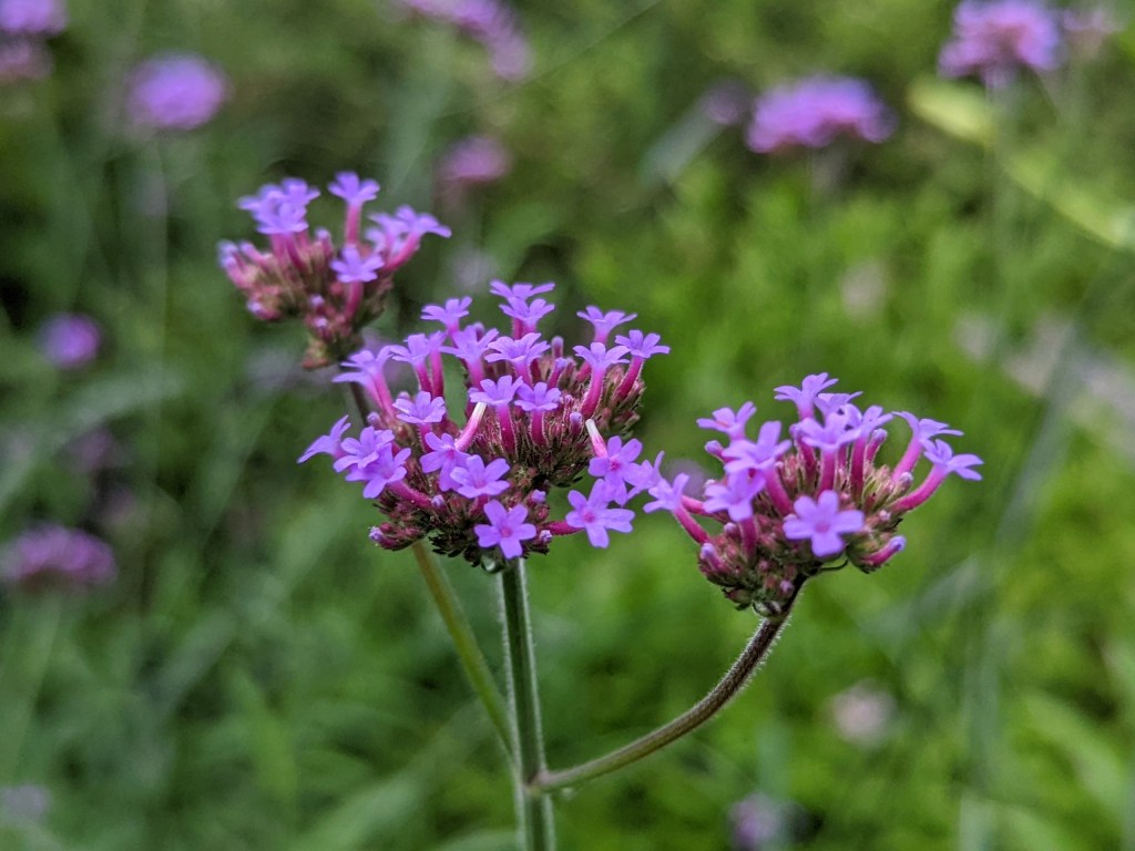 My wife and I visited our youngest son’s garden a few days ago, and in contrast to mine, his is filled with sunlight and a succession of perennial blooms rather than my emphasis on woody trees and shrubs with flowers jammed into the gaps. I noticed that rising above his splendid blooms in one area was a neat, small clump of Verbena bonariensis (below), perfectly planned.