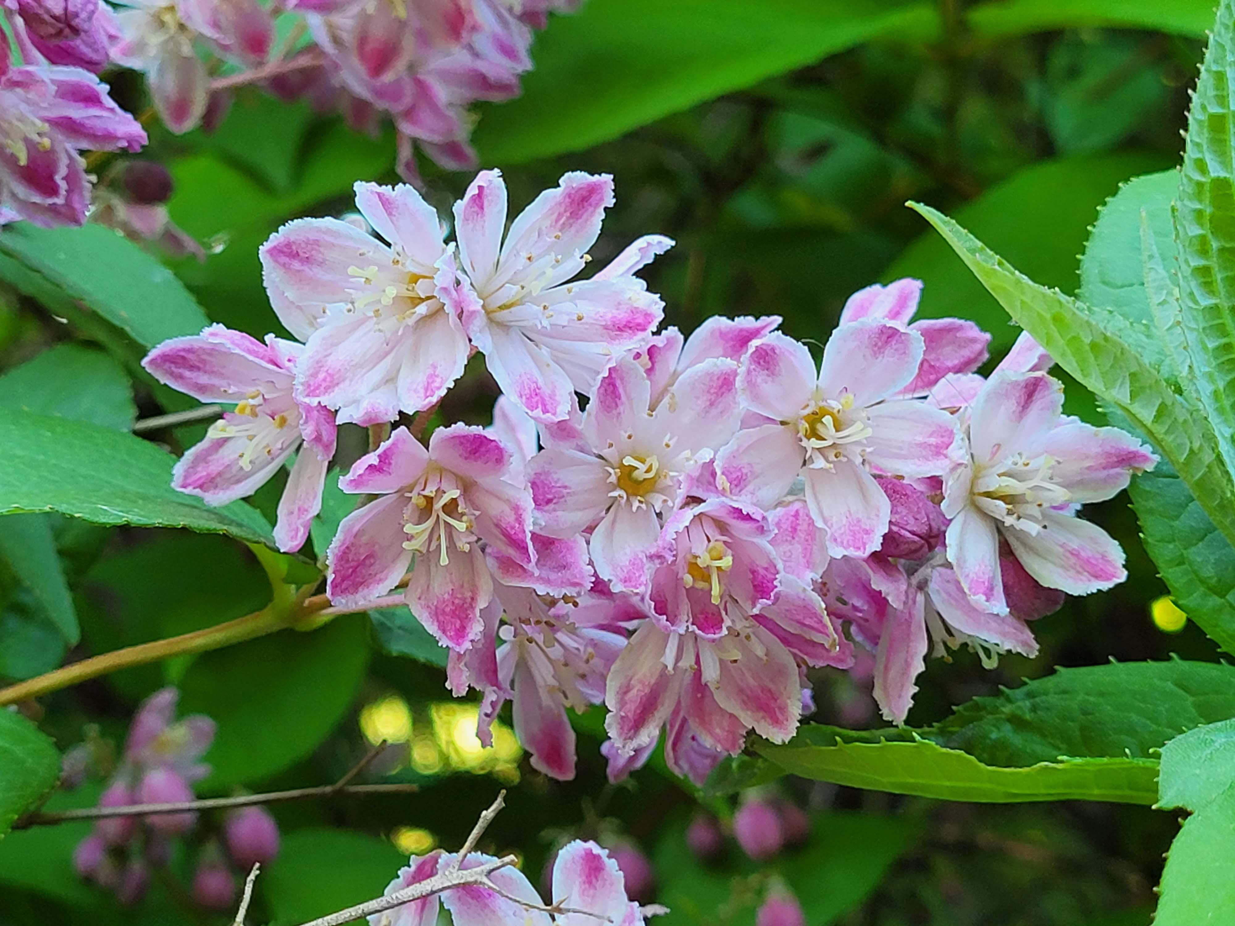 Deutzia is the genus and common name. It is in the hydrangea family with woody stems and cold tolerance to zone 5. I’ve never seen any disease or pest issues.