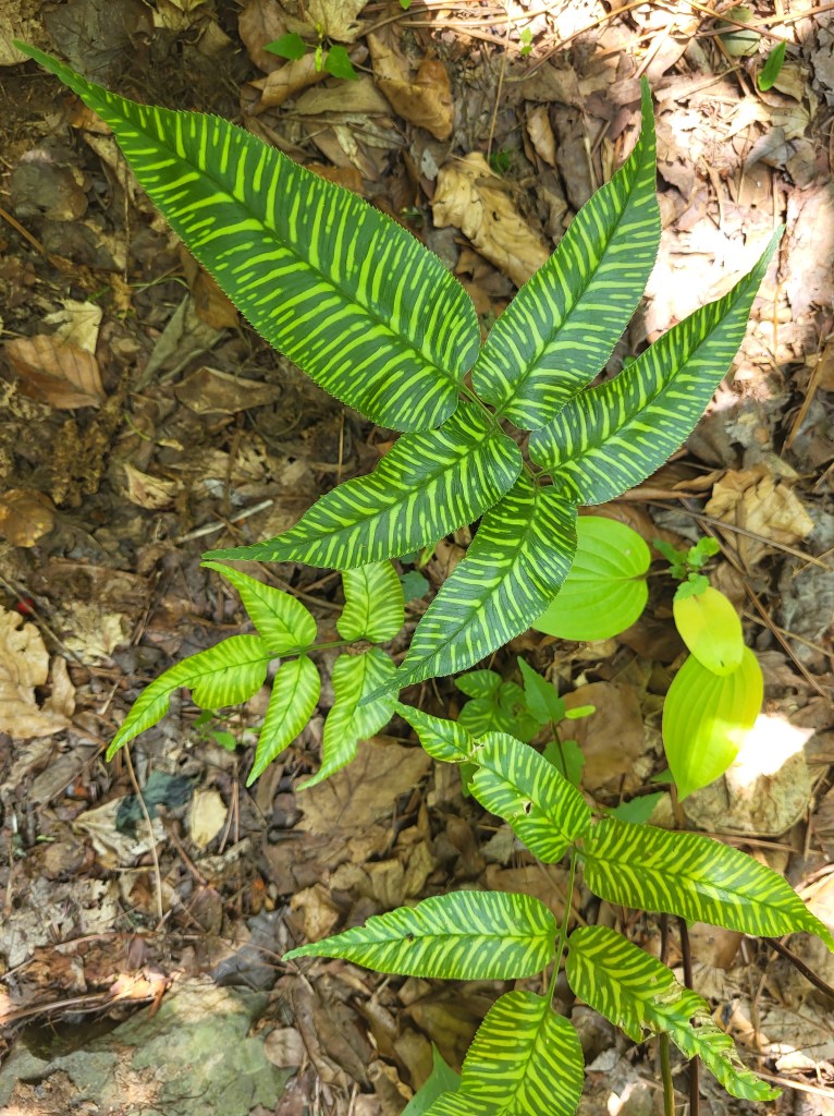 The garden’s collection of ferns has multiplied to dozens in recent years while observing ones that flourish in dry or damp shade as I strive for ideal placement. Two ‘Golden Zebra’ Bamboo fern (Coniogramme emeiensis ‘Golden Zebra’, above) were planted a few years ago, expecting both would perish the first winter. And, they did, or at least I thought so until the two reappeared this spring from under dense foliage. I’ve now cleared space for one as I consider how to better display the second.