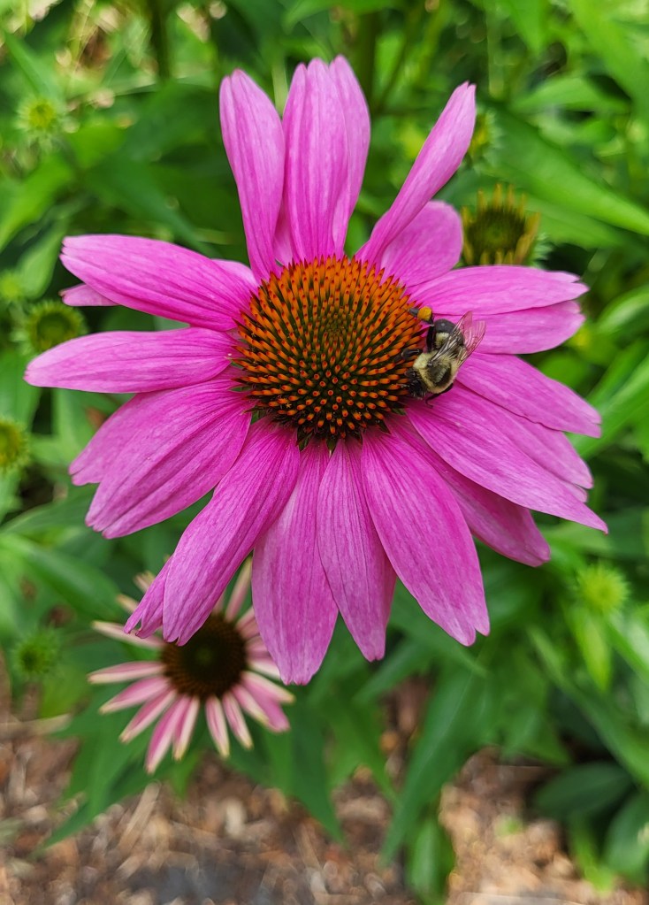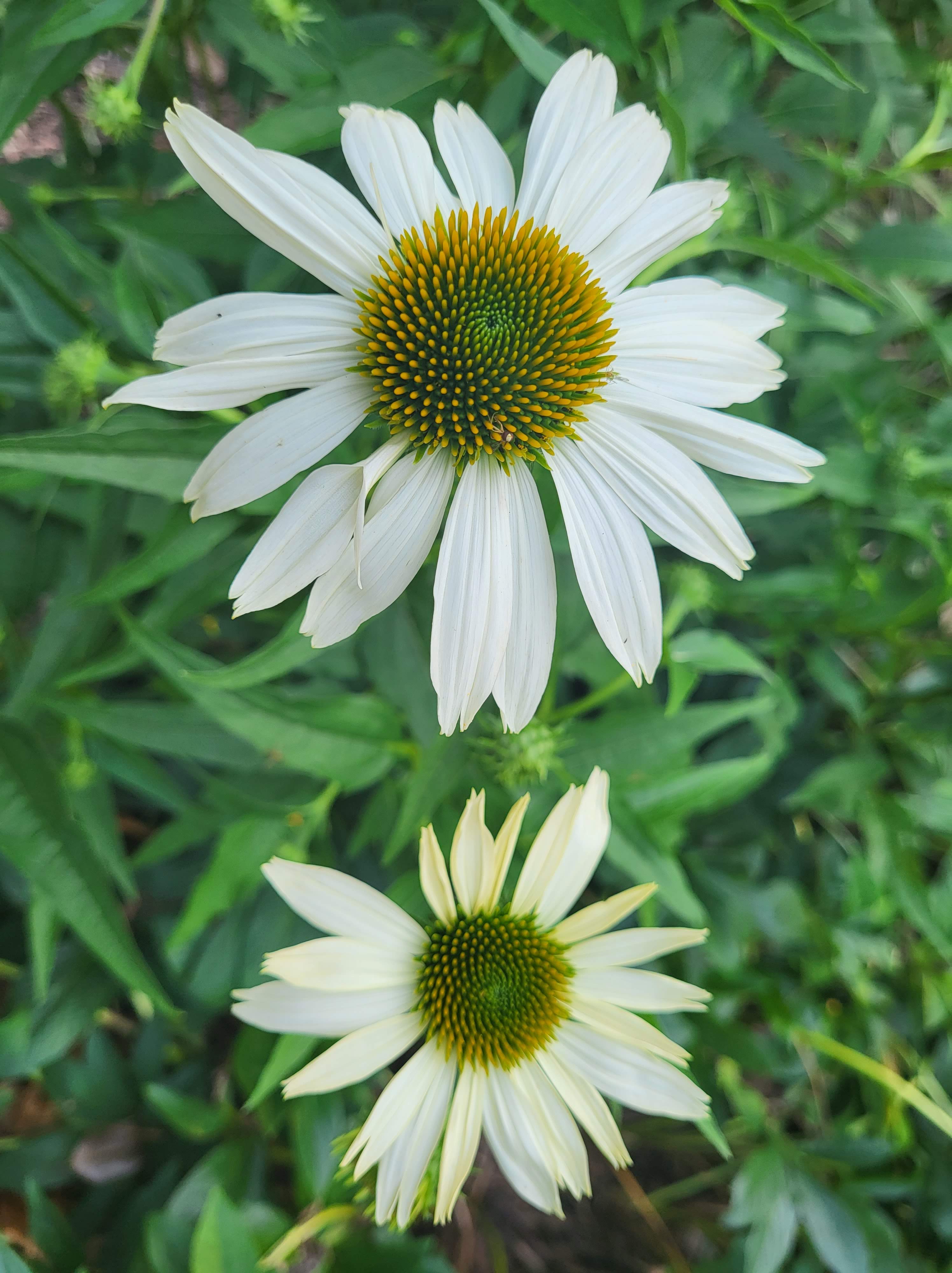 Coneflowers spread a bit more, but more often I am plucking and distributing the seed heads that are not left for the birds. Seedlings of the original ‘White Swan’ (Echinacea purpurea ‘White Swan’, above and below) frequently revert to the more common purple flower, so there is a mix of the two that I am quite happy with.