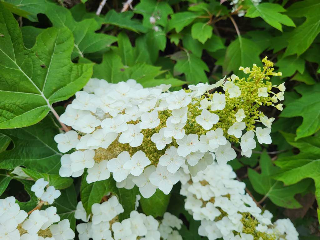 In recent years, I’ve noted the reduced number of honeybees in the garden, but on a sunny day there are now more on the Oakleaf hydrangeas (Hydrangea quercifolia, above) beside the koi pond than I could possibly count. There have always been plenty of carpenter and bumble bees in the garden, and loads of smaller bees I can’t identify, but I’m happy to see more of any pollinator.
