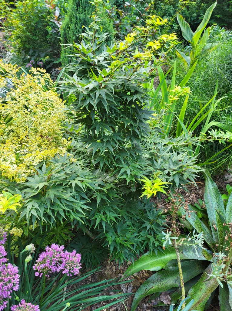Of course, my standards are questionable. I prefer chaos and a bit of shabbiness and don’t mind showing it off to make the point that a garden need not be manicured. There will always be at least a few weeds despite my pulling approximately 6.2 million maple seedlings in the past month. What do you expect, the garden is bordered by a forest with dozens of swamp maples (Acer rubrum). Some of the Japanese maple seedlings, of which there are dozens, maybe hundreds, are left to grow on to see if they turn into anything unique. Probably none will, but they’ll get pulled later. Besides, they kind of show that plants are happy here.