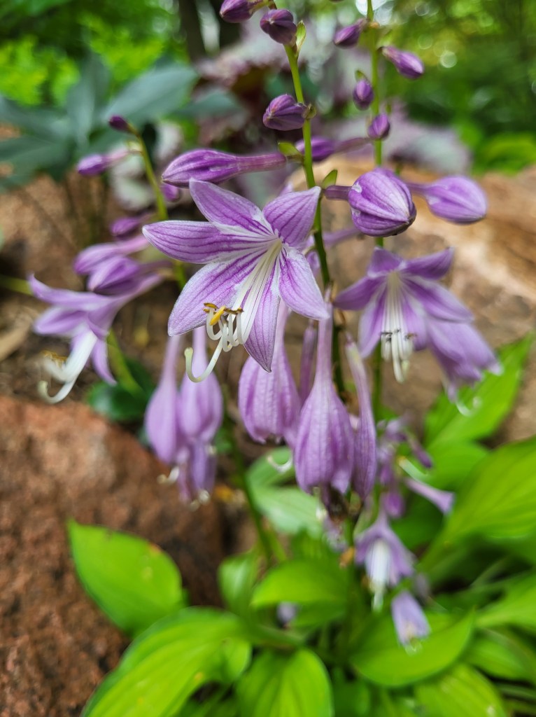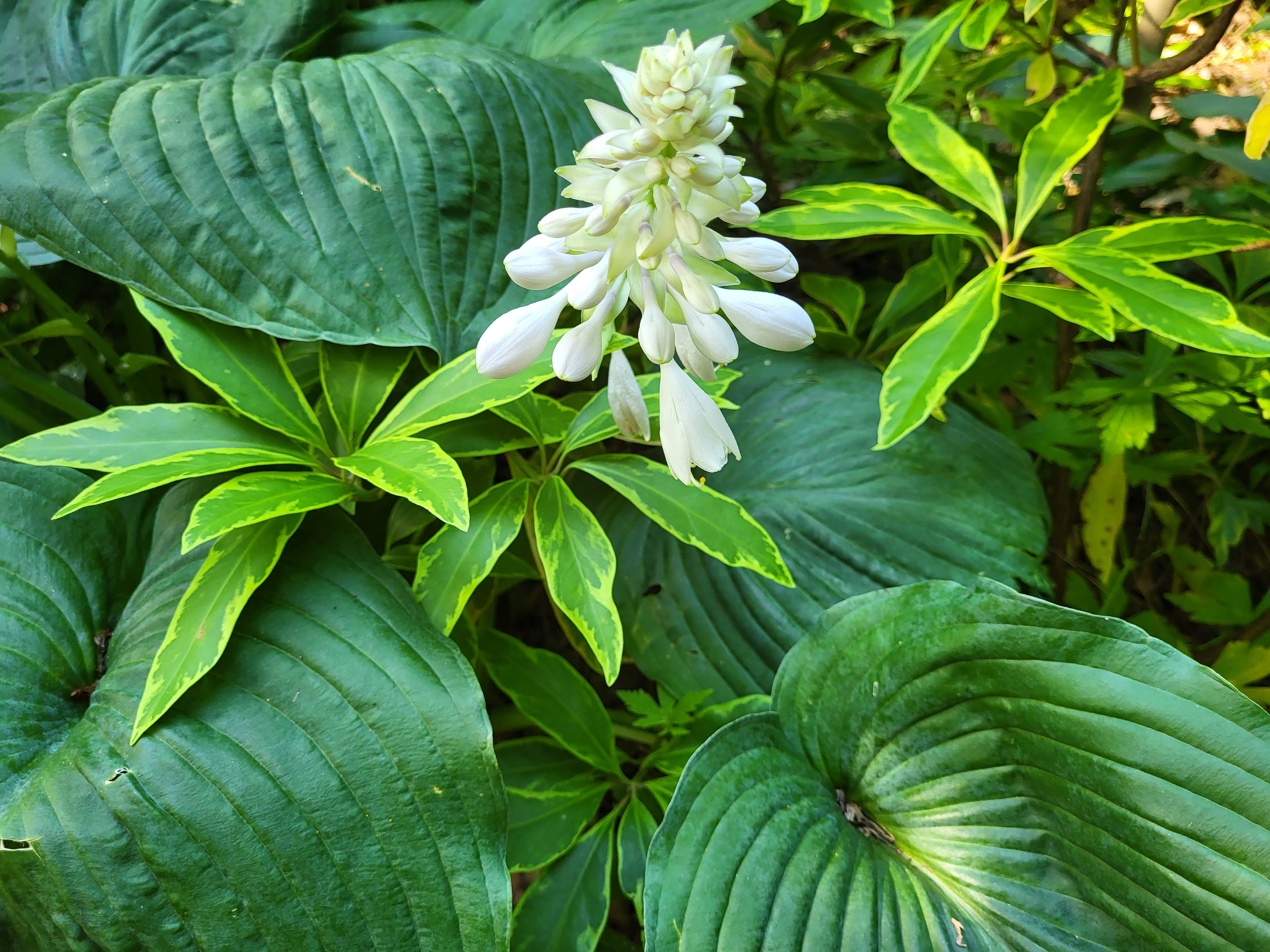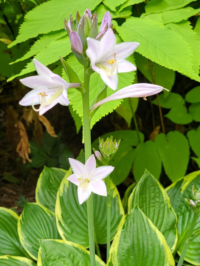 While flowers of hostas (above and below) are underappreciated, many are glorious and favorites of bumblebees. Early summer is the peak peak period of bloom for hostas, but several flower into August.