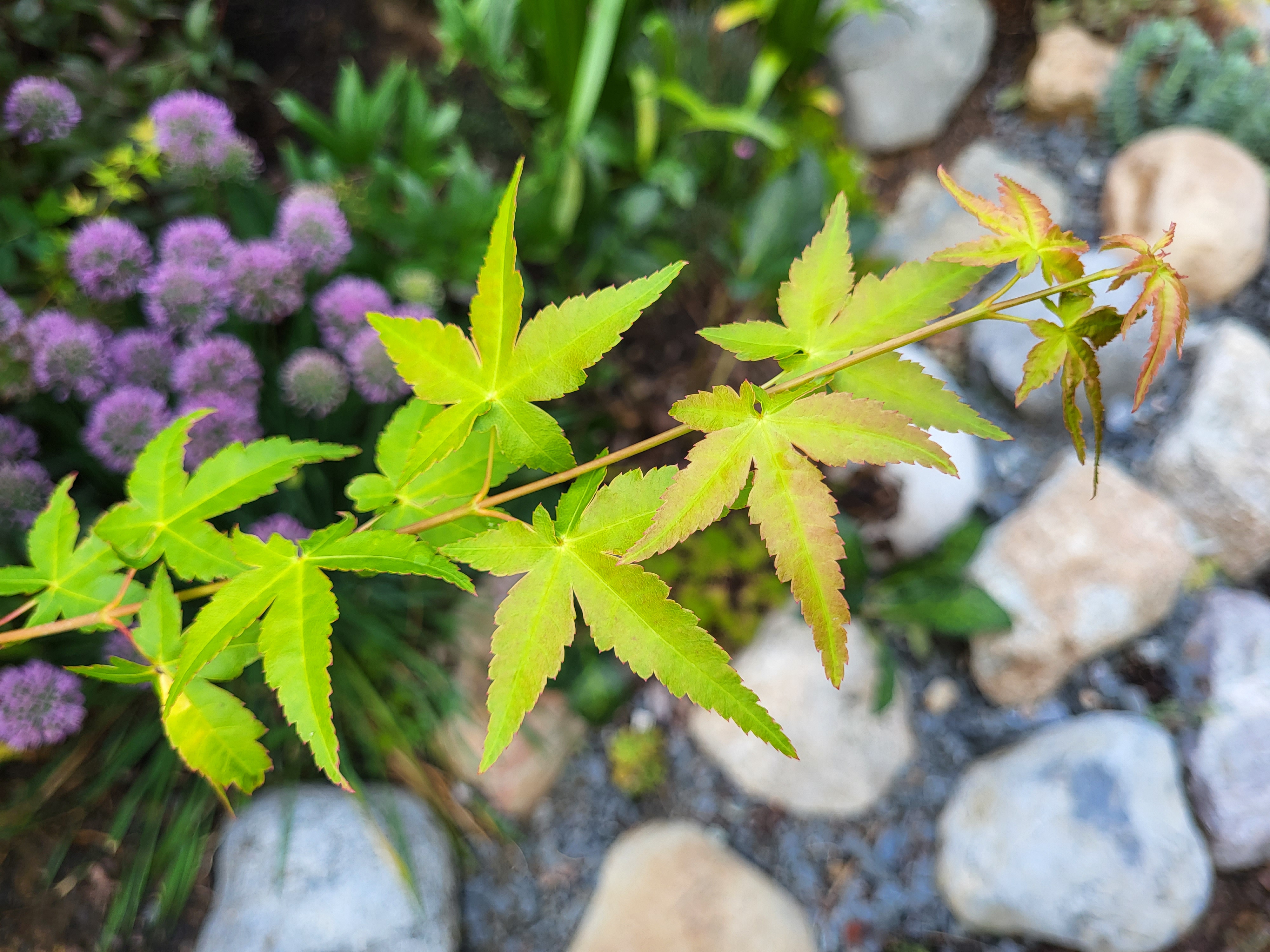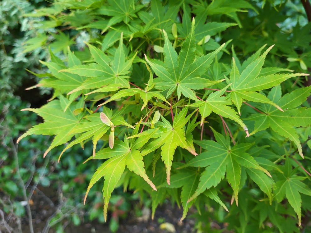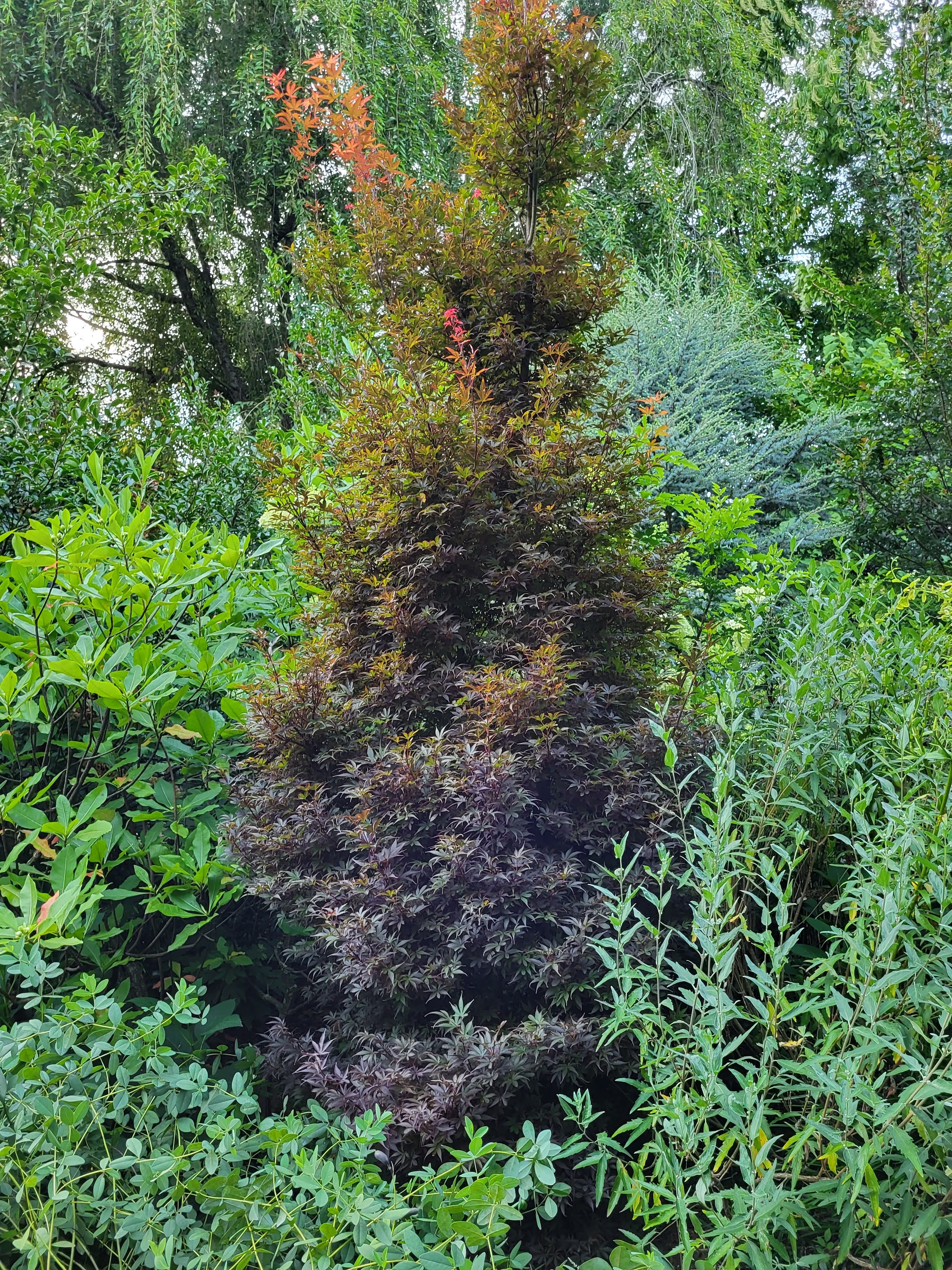 With the recent addition of two Japanese maples I’m thinking this might be the end. Several remain in pots on the patios, but without a spot to plant them I suppose they could stay in the containers for a few years. Even with the extremely dry spring and early summer, and my lack of attention, all are looking good.