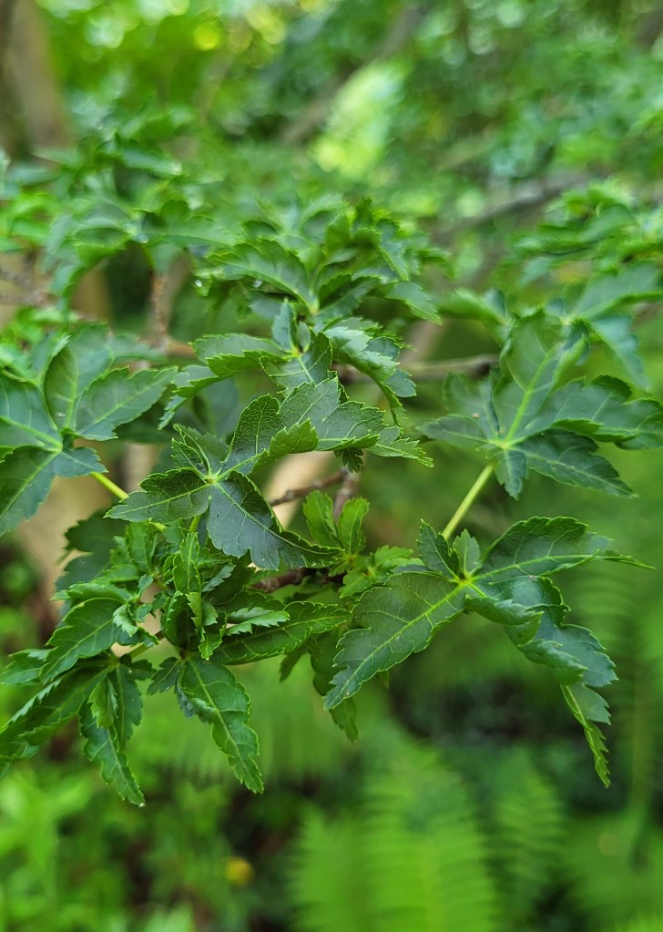 The interior coloring of my treasured new addition, ‘Manyo no sato’, has faded from purple to green. I expect this will occur annually, but it has weathered the recent heat and dryness without any visible signs of stress. The second maple planted several weeks ago, ‘Koto-no-ito’ is thriving in the naturally damp lower, rear garden.