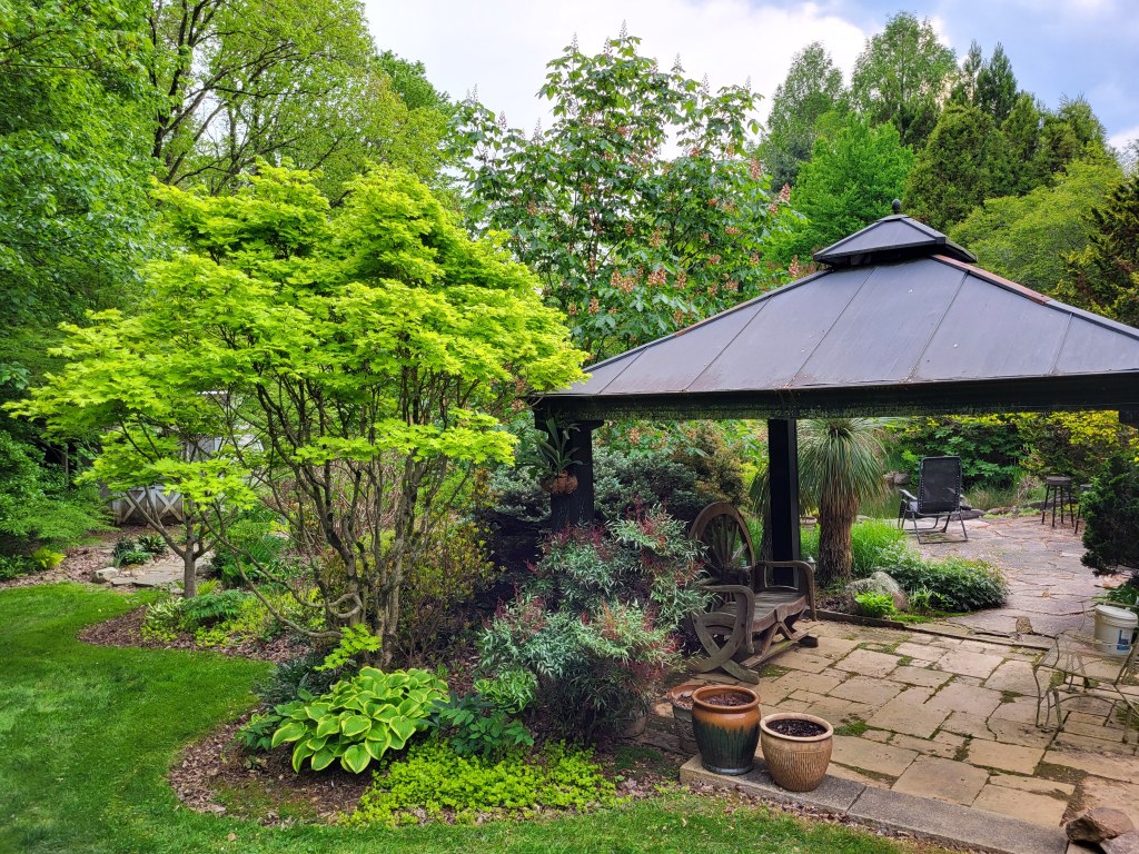 When the spruce, boxwood, and probably the holly beside the planned sunroom are removed , the priority will be to find a single plant to dominate the space. If all works out, this will be a ‘Moonrise’ Japanese maple (Acer palmatum ‘Moonrise’). This maple is best suited to part shade and beginning with a tree of substantial size the area get will off to a good start, with a Japanese maple that will not overgrow the area. The fillers to give a more mature look from the start will be easy, though I expect the change from overgrown to barely filled will be jarring to my eye.