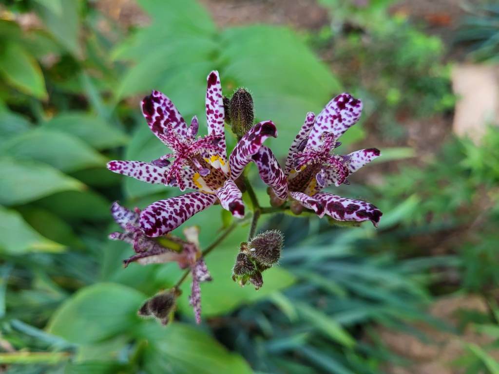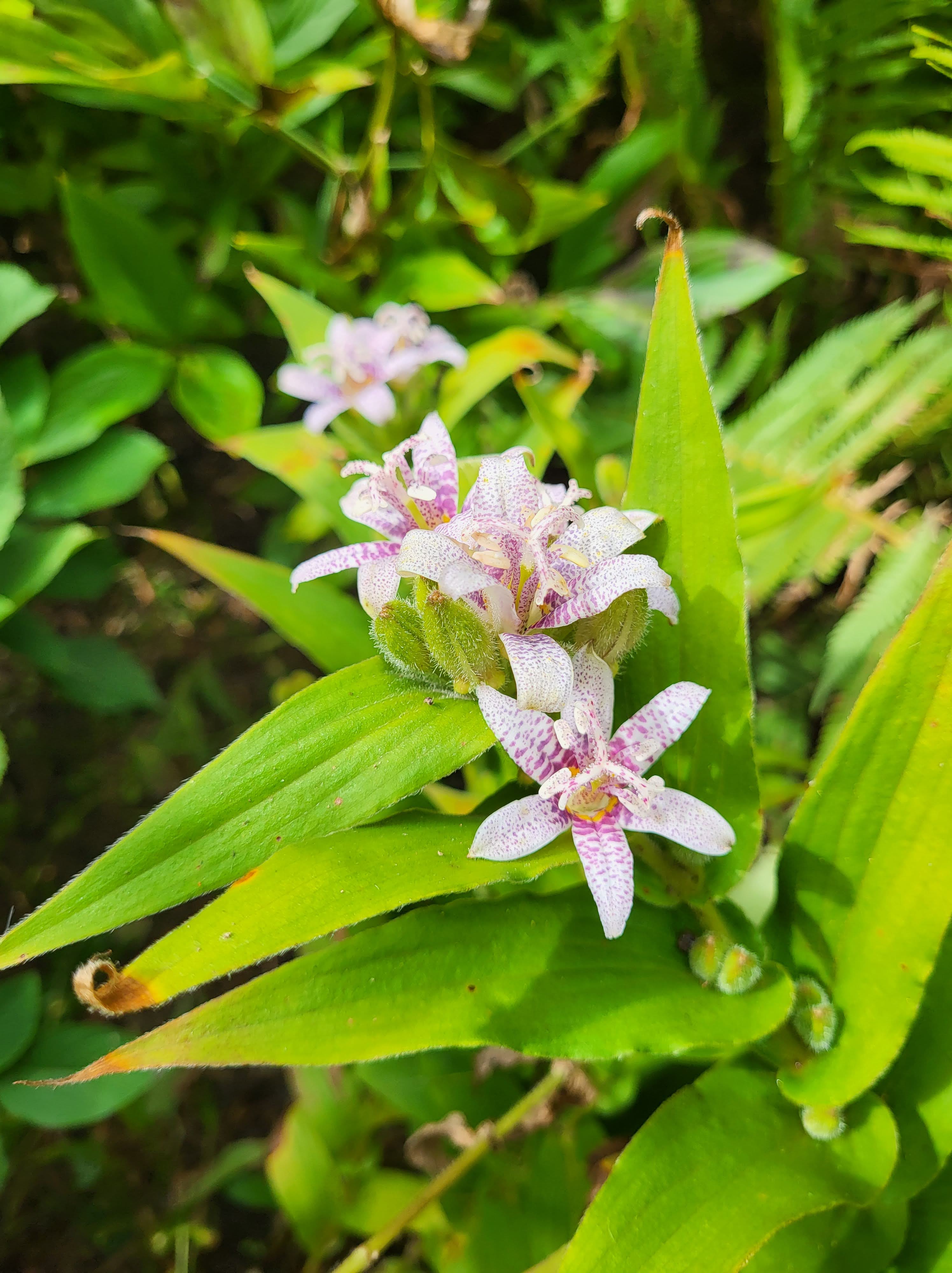 I often see toad lilies recommended for shade, but here, the best flowering is on ones with exposure to a few hours of direct sun. A few clumps brown along the edges in too much sun, but these flower the heaviest. Several toad lilies in deeper shade flower sparsely, and these are candidates for relocation. In recent years I’ve slowed down adding to the collection of toad lilies as part sun areas became scarce, but I’d still like to add a few with yellow flowers.