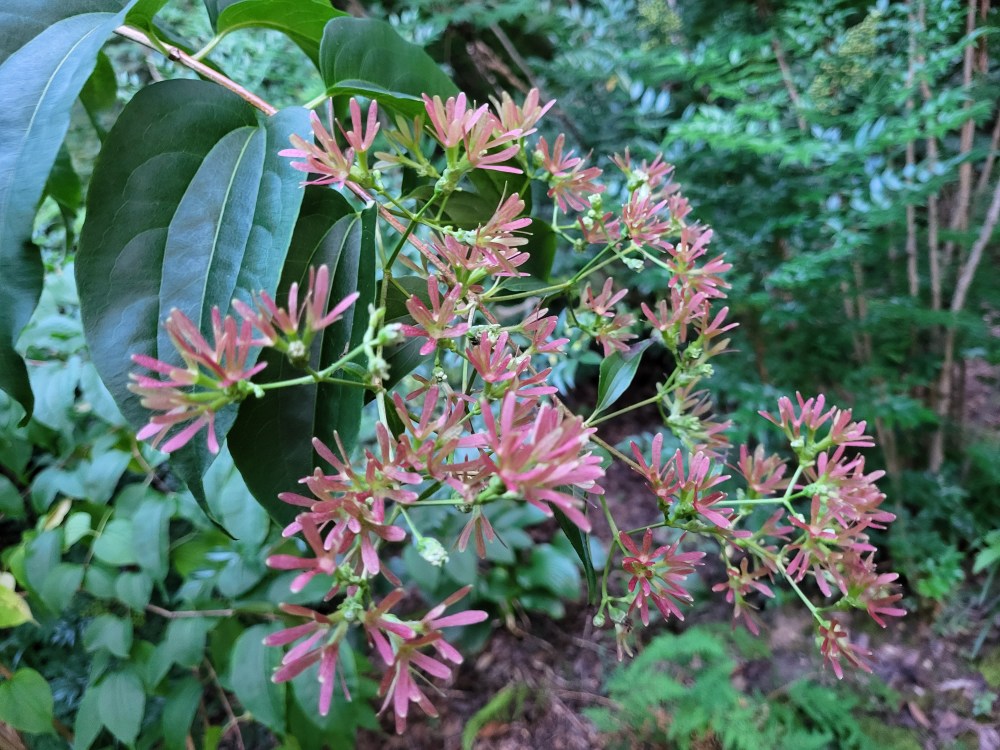 The next, and perhaps best, phase with red calyces replacing faded flowers of the Seven Son trees (Heptacodium miconioides, above) has kicked in. This is not so great for pollinators, but it continues the beauty of this small tree. The late summer clusters of small, white blooms attract many pollinators, but the the calyx color is the reason to plant the Seven Son.