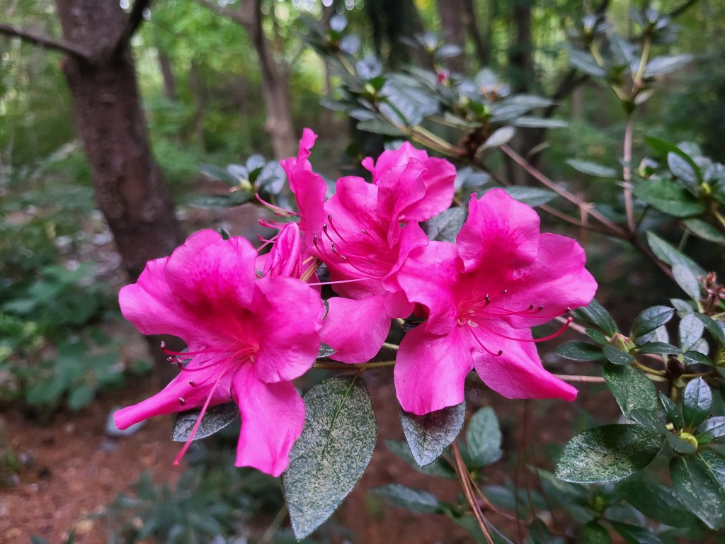 Several varieties were planted in the shaded, side garden that borders the forest, and in the first year, nothing. Yes, there were spring flowers, but nothing in autumn. A conversation with the breeder informed me that a part sun location would be most likely to encourage the autumn bloom, so when a few more azaleas were added to the collection these were planted in morning sun. And, they flowered, at least most did.