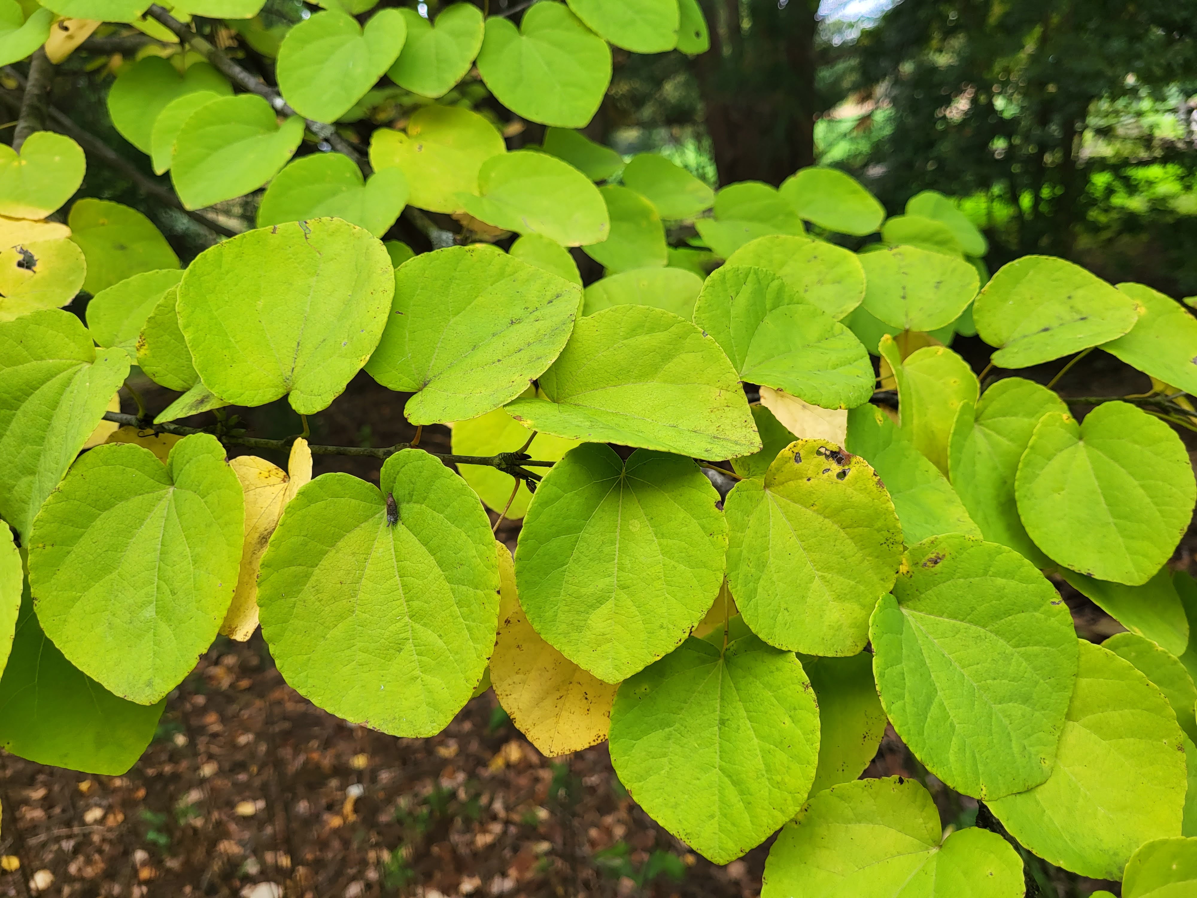 I notice that I have planted more trees with yellow and fewer large trees with red autumn foliage. The katsura (Katsura japonica, below) is another with exceptional yellow foliage, though it lasts only a short while before leaves fall.