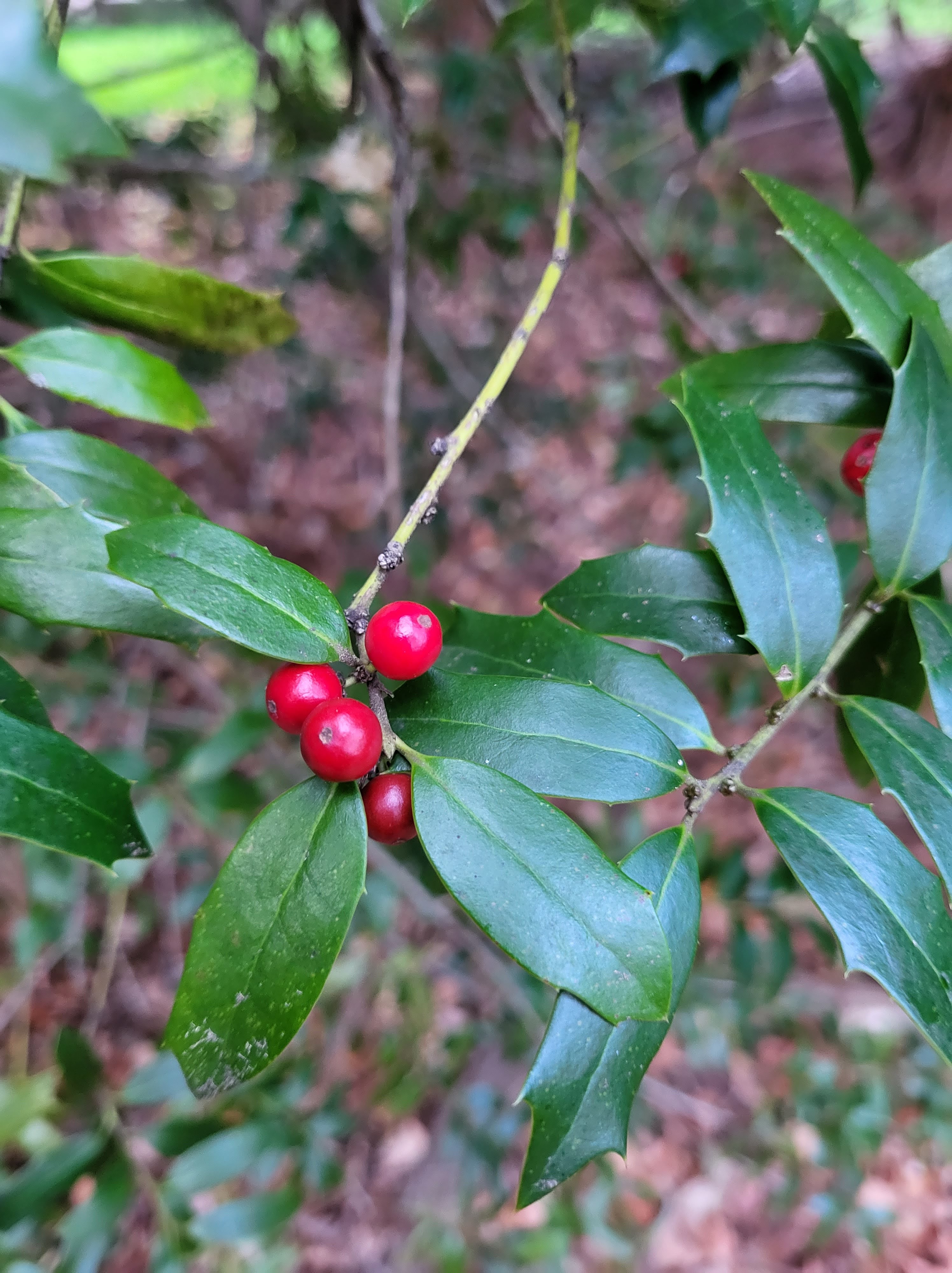 This is an off year for the Koehne holly (Ilex koehneana) that is typically the most dependable and heaviest to berry in the garden. There are scattered berries, but not in the quantity seen every other year.