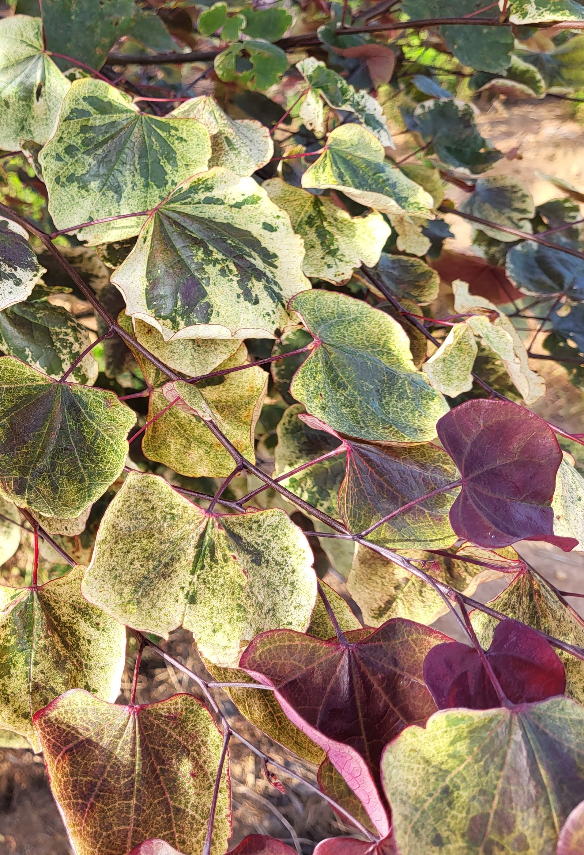 But today, I will declare that this completes the collection of redbuds. Yeah, yeah, I know I’ve said this before, but until a new one comes along I can’t live without, I’ll struggle along with the dozen or so I have. The small area beside the driveway will now include three; ‘Carolina Sweetheart’, a weeping, red leafed ‘Ruby Falls’ (above), and my treasured, variegated mutation of the yellow leafed ‘Rising Sun’ (below). Other redbuds are scattered about the garden.
