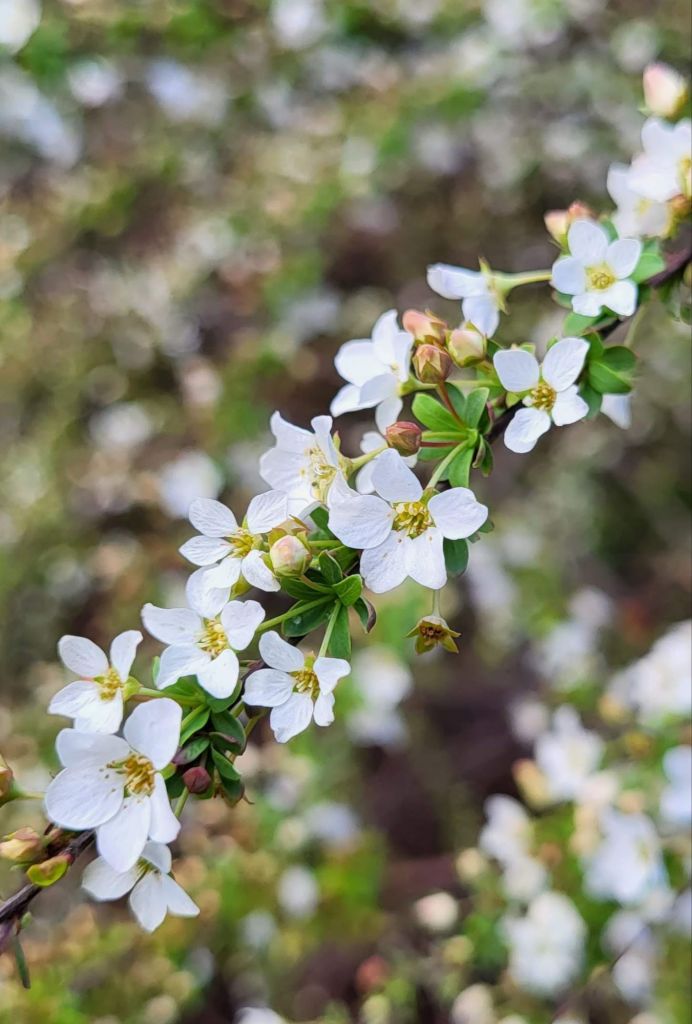 ‘Ogon’ was planted long before it was plugged with the trade name Mellow Yellow, and its early flowers and narrow yellow leaves are marvelous. Still, more than once, I’ve considered chopping out this unruly shrub. I’m not one to keep up with regular shearing to tame such a beast, though finally I gave it chop last year following its March flowering.