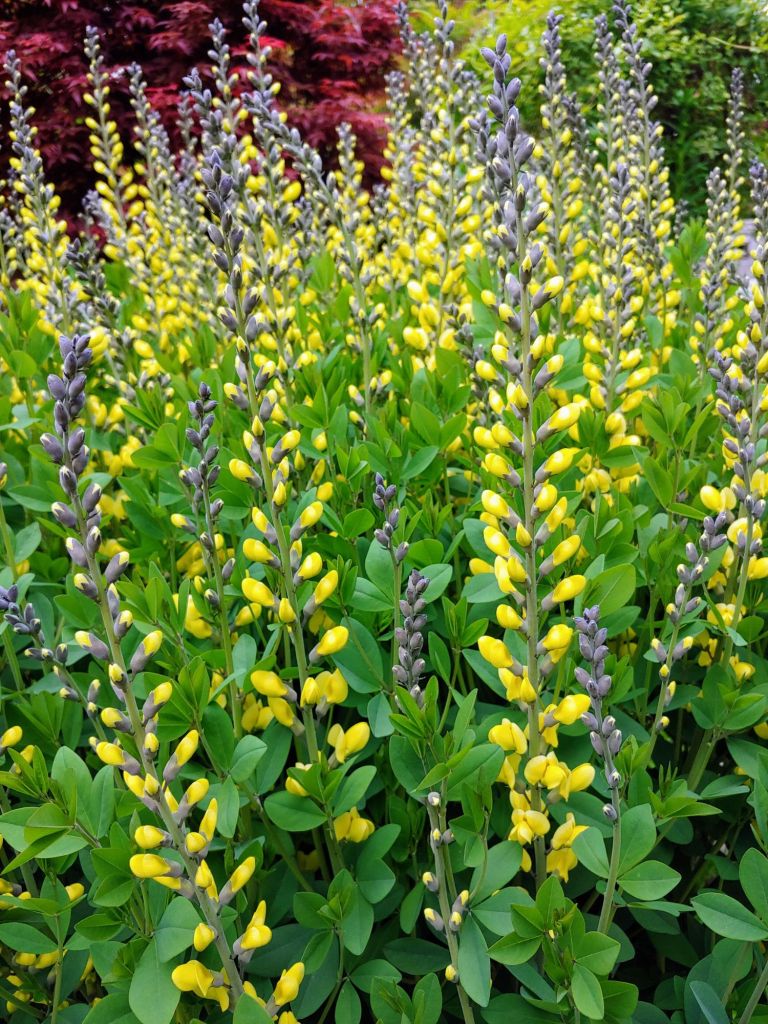 To vary textures, several hostas were transplanted to the slightly drier topside of the trench, but several broad leaf plants must still be added. Certainly, a baptisia (below) or two will be planted. These tolerate wet and dry and even a bit of shade, though I must locate any so that vigorous clumps do not grow to obstruct the drainage.