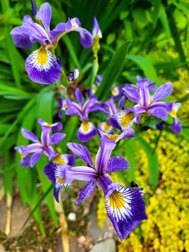 The low lying trenches are intermittently saturated during periods of regular rainfall, so an easy first step has been to divide thick clumps of Japanese (Iris ensata) and Siberian irises (Iris siberica) that thrive in damp soils nearby. Several varied colors of these have been ordered, as well as Louisiana irises that were delivered and planted a few days ago.