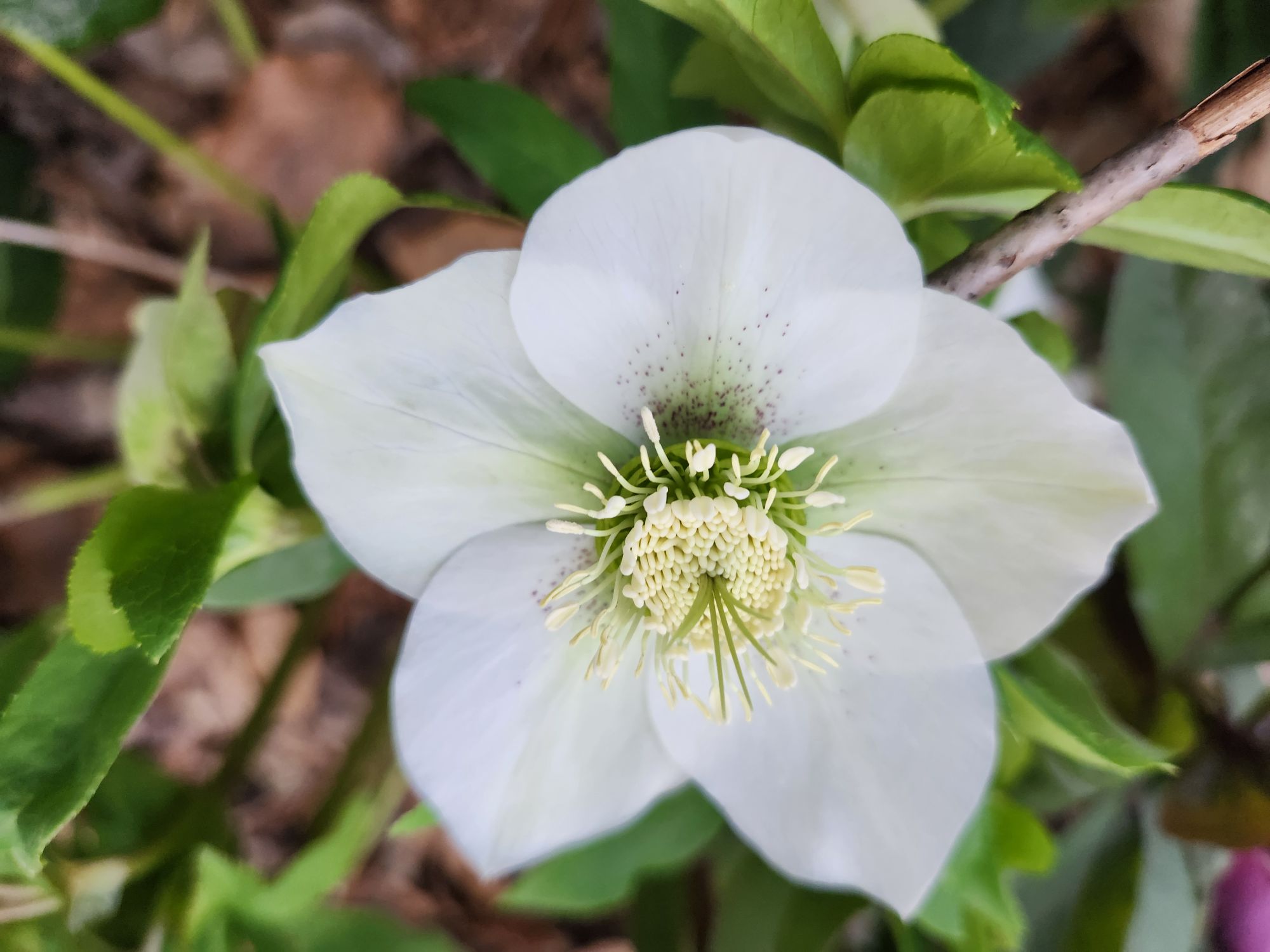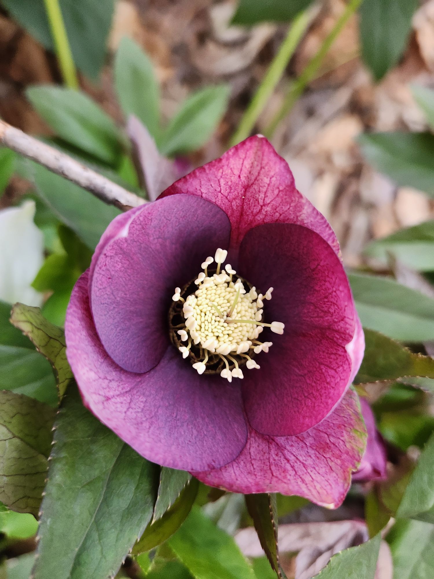 Barbara alerts me that she has discovered a marvel, a hellebore with flowers of three colors (below). I am quite pleased she has made the rounds on this mild early March morning, but her discovery is far short of astonishing.