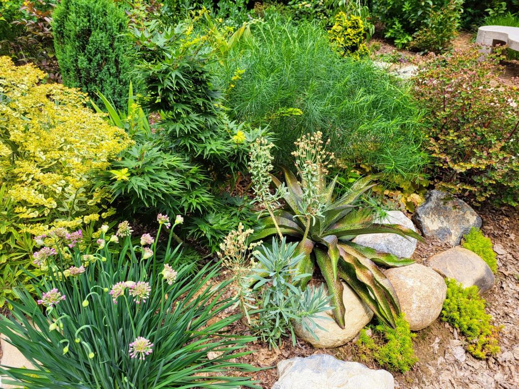 Mangaves, agaves, and other winter tender plants stored in the basement and greenhouse will be planted out in April when the threat of severe cold has passed.