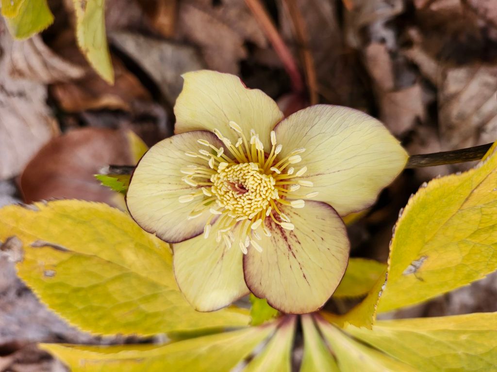 Another yellow flowered hellebore has been discovered, but its foliage is off color, indicating this spot is less than ideal. I’ll soon move it before its health worsens.