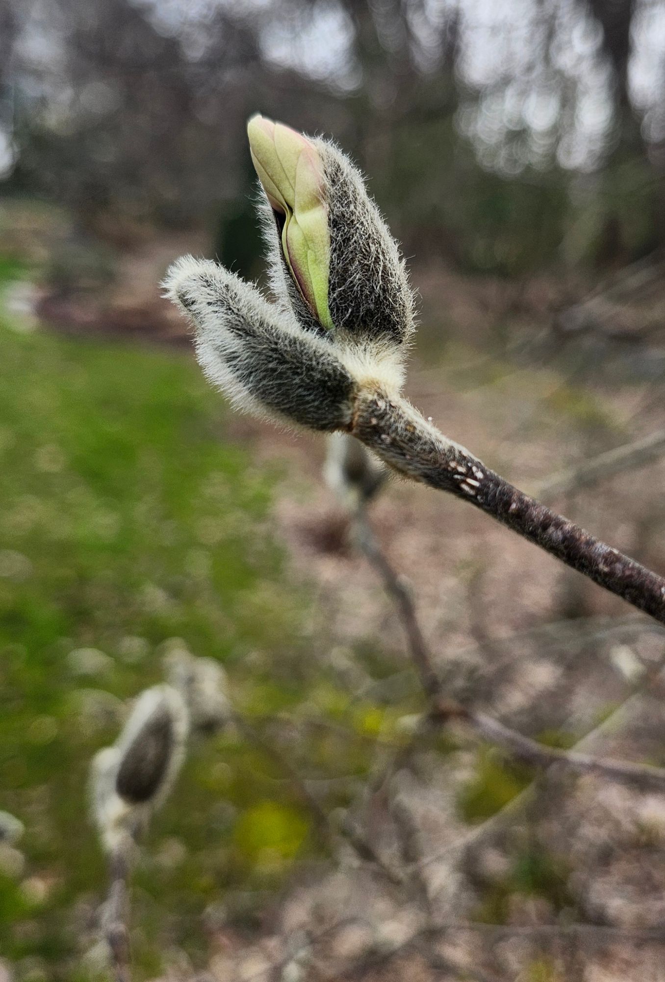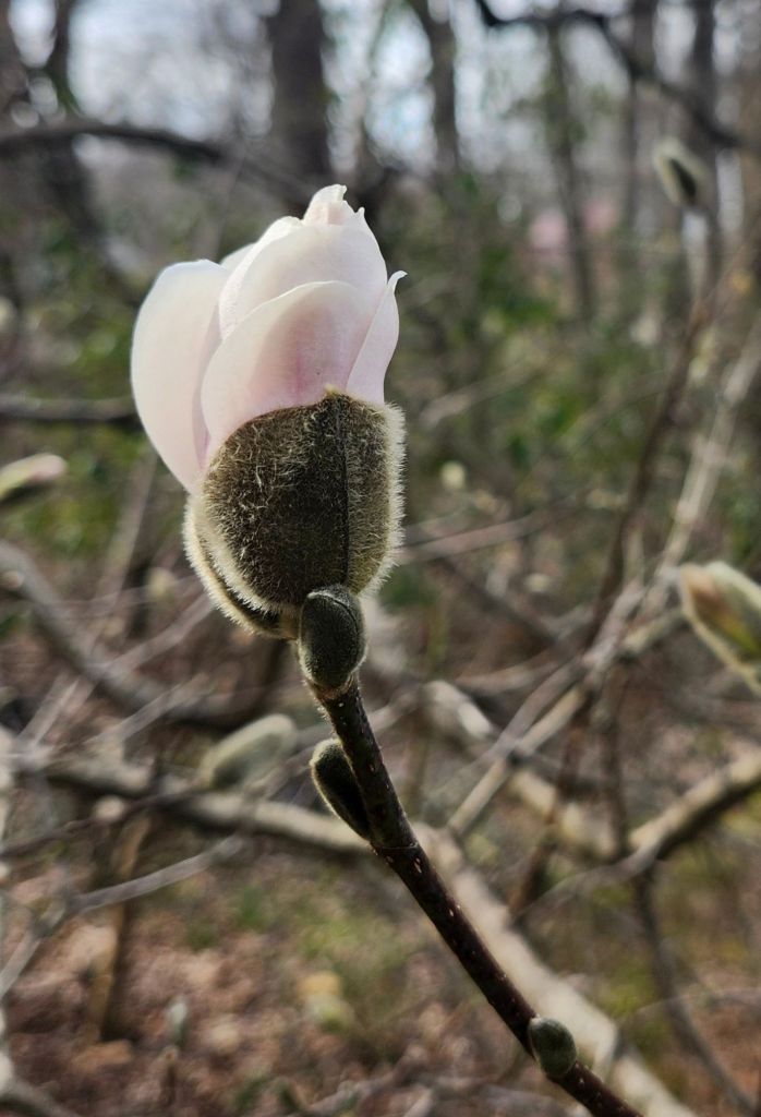 Today, the first glimpse of color is seen in uppermost branches exposed to the sun as buds of ‘Merrill’ swell on this seventy degree afternoon. With several seventies in the forecast, peak flowering should reach the lower branches in three days, March 15. Temperatures slightly below freezing are forecast for early next week, so I’ll savor the flowers through the weekend.