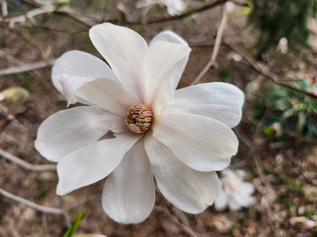 Often, four days of glorious blossom are interrupted by an eighteen degree freeze (Fahrenheit), the splended blooms turning first to mush, then quickly to brown. Scattered buds not fully opened might survive two nights of cold with a bit of brown along the edges. This freeze is not unusual for March, and if the gardener is deeply disappointed by the damage, he can choose a later flowering magnolia or another tree altogether. Redbud and dogwood flower in April, and both resist damage from even the most severe freezes.