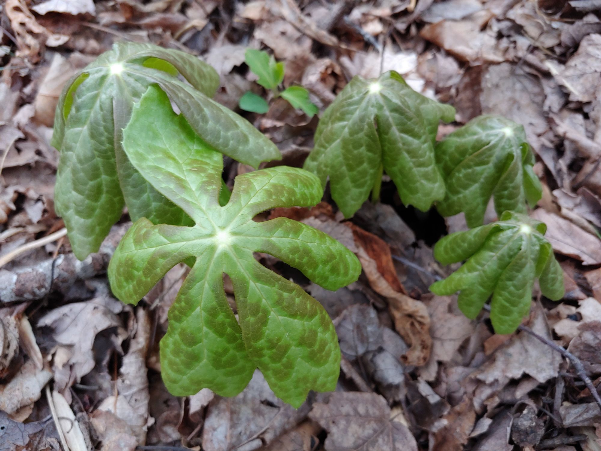 With the return and multiplying of Asian mayapples and several more soon to be delivered, I envision moving closer to the lushness of favorite gardens in the Pacific Northwest. While hardly considered for their flowers, the large leaves of native and Asian mayapples are ideally suited to the shaded garden.