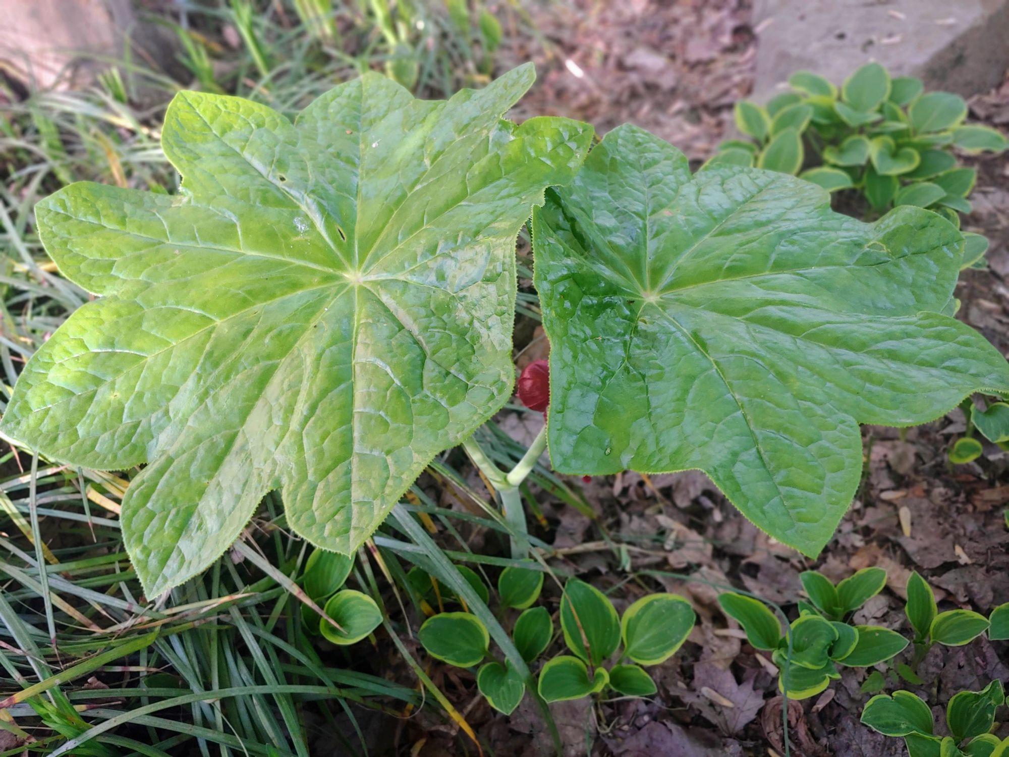 The Chinese mayapple a year ago before one of two died to the ground in late summer.